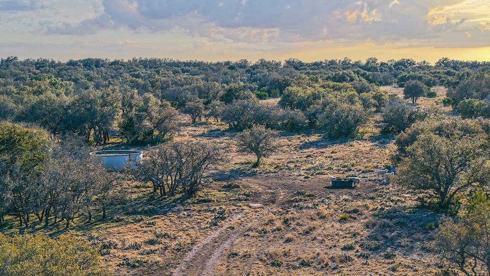 Water resources include four wells distributed across the property, supporting livestock and wildlife in each of the four primary pasture areas. A wheat field of approximately 40 acres provides forage and contributes to the working agricultural operation.