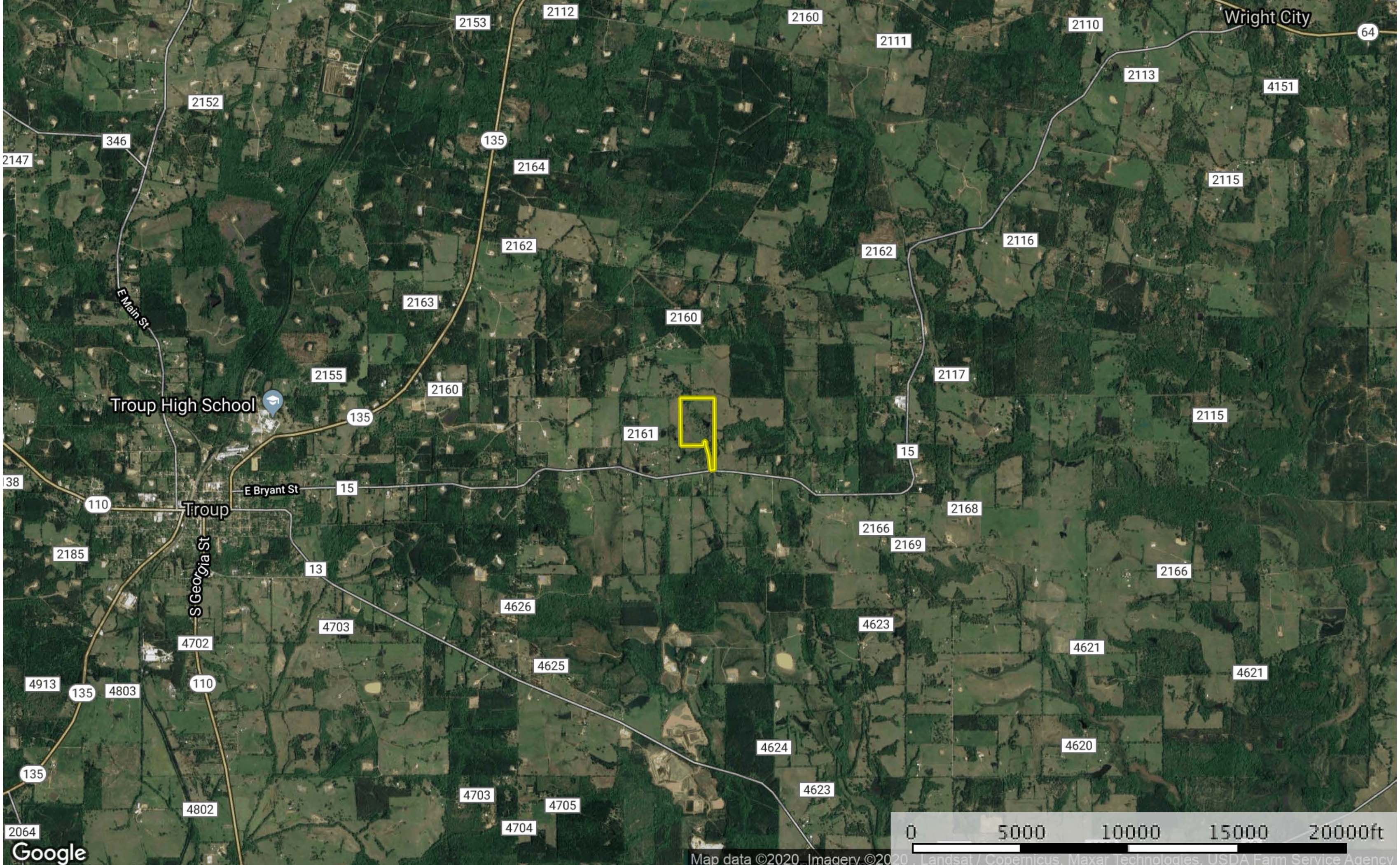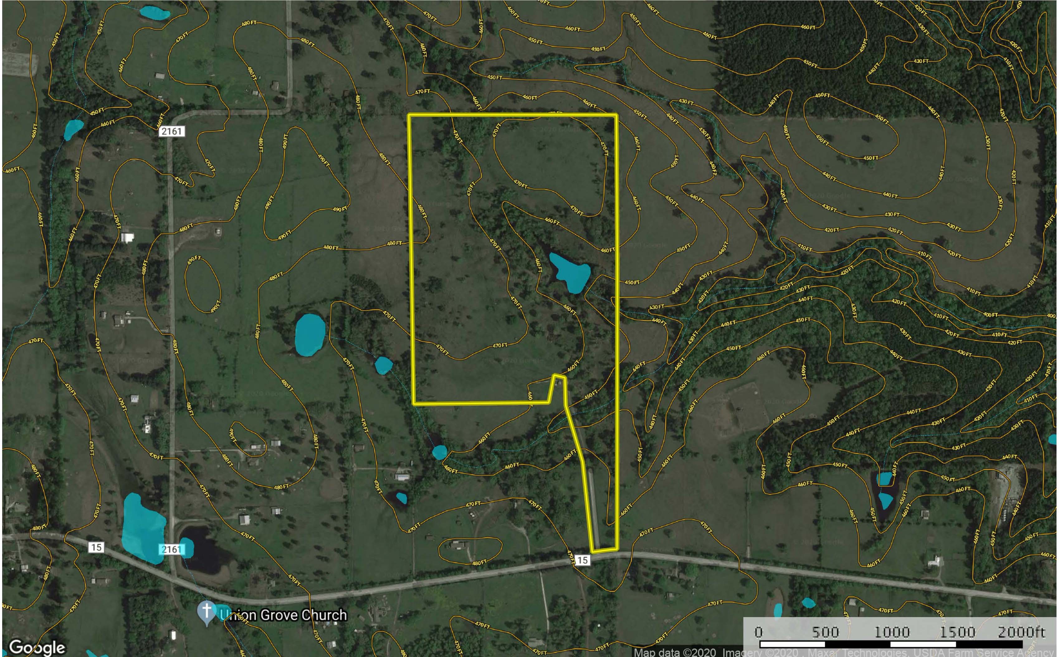 An affordable recreational tract of land in close proximity to South Tyler. This tract is located just east of Troup and has good frontage along an FM road. The property is to be cut out of a larger tract of land that has a radio tower. The total site size is estimated to be approximately 61 acres but final acreage will need to be determined by a survey. This tract is mostly open with a mixture of native and improved grasses. It has a small pond that is surrounded by large hardwood trees and generally, the tract has very favorable topography. Elevation on the property ranges from an approximate low of 440’ ASL to an approximate high of 480’ ASL. Electricity is on the property and community water is reported to be along the southern side of FM 15.