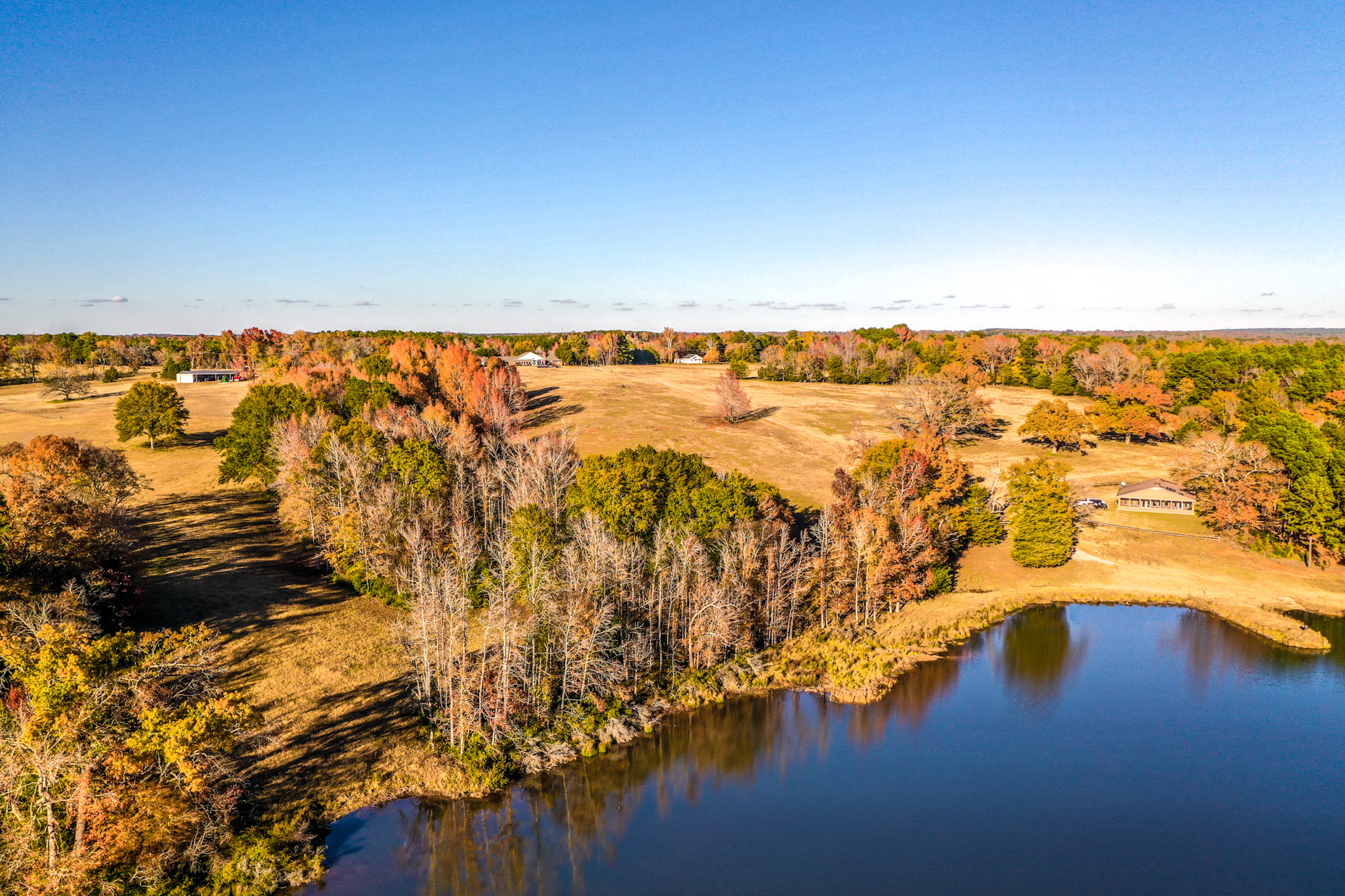 - Tree lined 20-acre lake with fantastic fishing
