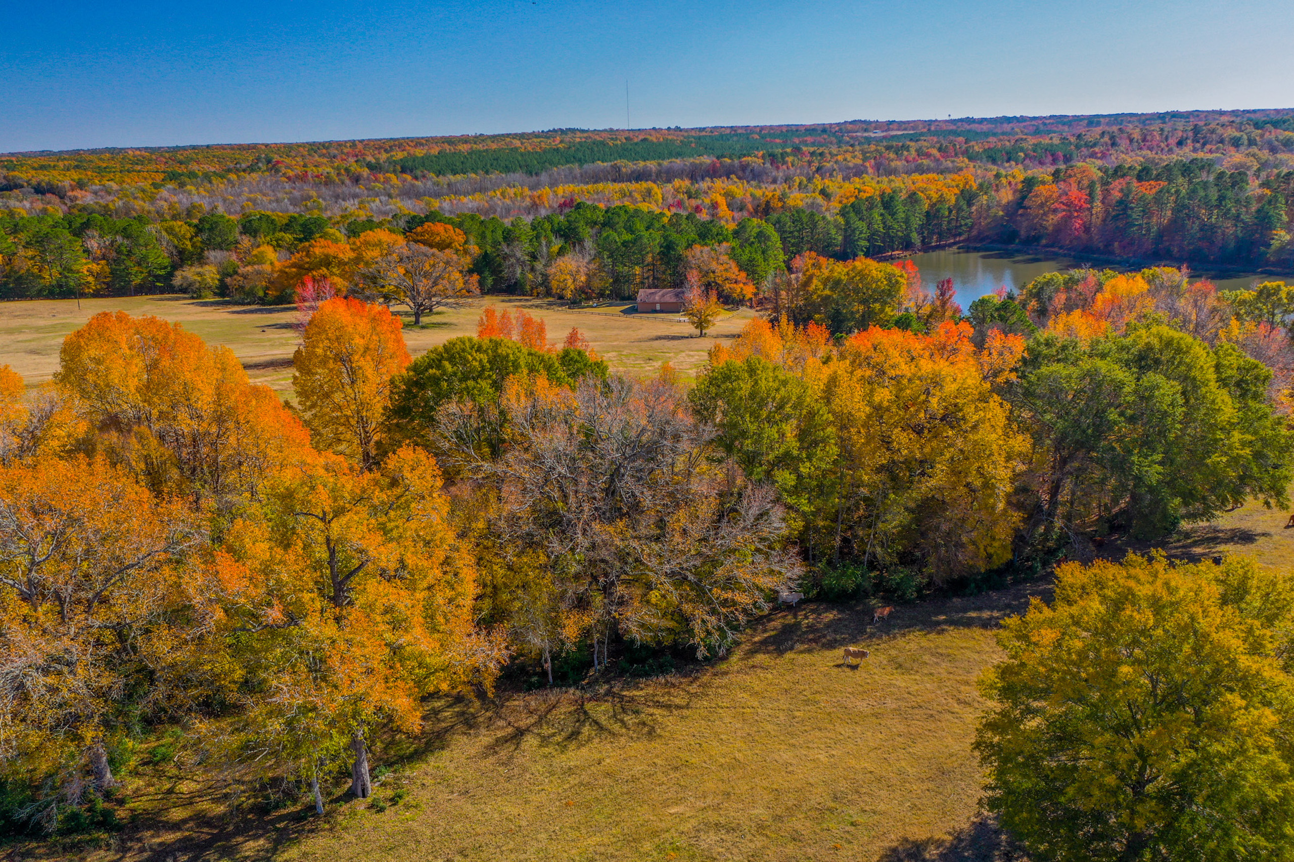 Land Characteristics: This approximately 250-acre offering is comprised of two non-contiguous parcels with the main improvements, a large lake and two houses located on the south side of CR 26 which is approximately 234 (+/-) acres. Additional frontage along Old Providence Road bounds the southwestern portion of the property. There is an additional 13 (+/-) acres on the north side of CR 26 that is part of this property and offers an additional layer of control for both views and drive-up. The tract has an estimated 108 acres of mixed timber and 123 acres of improved pasture and native pasture areas in addition to the lake which is estimated to have just under 20 acres of surface area. The mixture of open and wooded areas throughout the property offers a significant edge that is very appealing for hunting purposes and the mature stand of timber offers great visibility with a relatively clean under-story.
