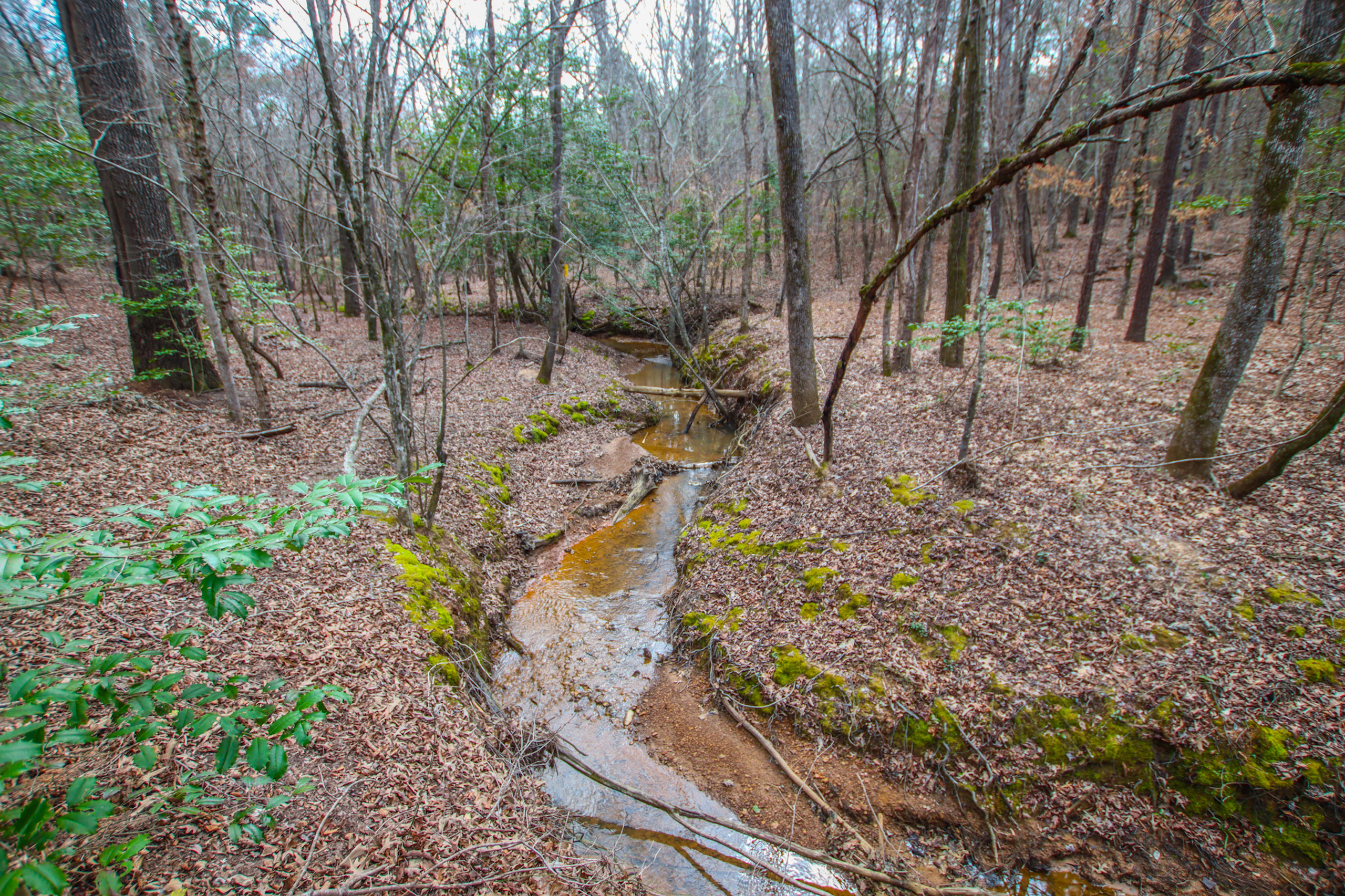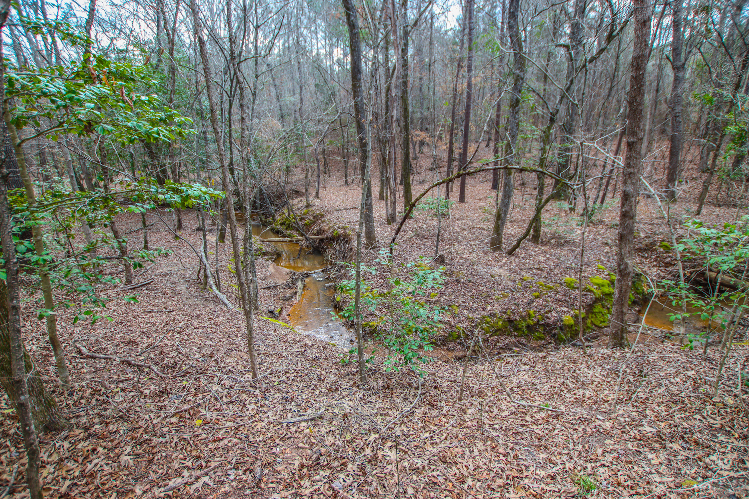 This tract is cut out of a larger parcel. It is almost 100% wooded, with the bulk of the timber consisting of mature hardwood and Pine. The southern 2/3 of the property has a perfect stand of timber with many scattered large White Oaks and other desirable species. This portion slopes downward to a nice creek that appears to form the bulk of the western property line. While there are trails throughout most of the property, it is noted that the southwestern portion of the property has a clean understory that can easily be walked.