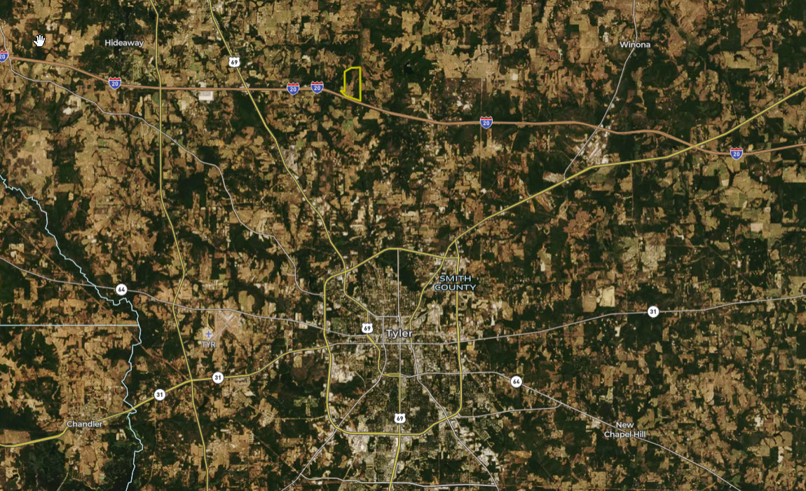 A rare opportunity to own a diverse, large acreage tract near the growing community of Lindale. The property is located just north of I-20 and accessed via a county road with good linkages to Lindale. This tract offers a mixed variety of open pastures, planted pine timber, dense mixed timber and large native hardwoods scattered across the rolling topography. If you are looking for rolling hills and vista views this tract has it in spades. Elevation on the property ranges from an approximate low of 350’ ASL to an approximate high of 540’ ASL. Generally speaking, the tract slopes downward from South to North so as you drive north from the entrance you are treated with multiple vista type views as you get deeper into the property. The result are multiple, very desirable building sites that offer a unique blend of convenience, privacy and outstanding views. The topo map details multiple springs which originate in the multiple draws that specifically line the eastern and northern portions of the tract. Several of these would offer potential lake sites that would increase the recreational appeal of the property. The northwestern portion of the property generally follows Little Saline Creek which ties into Hitts Creek just north of the property. These two creek bottoms offer large, unbroken stretches of timber on neighboring tracts that offer great wildlife potential. The property has a cell tower with a good income stream which is located in the extreme southwestern portion of the property. The property is estimated to be approximately 336 acres but a new survey will be needed to determine actual acreage. The tract is located approximately six miles east of the I-20 / SH 69 intersection and is accessed off of CR 496.