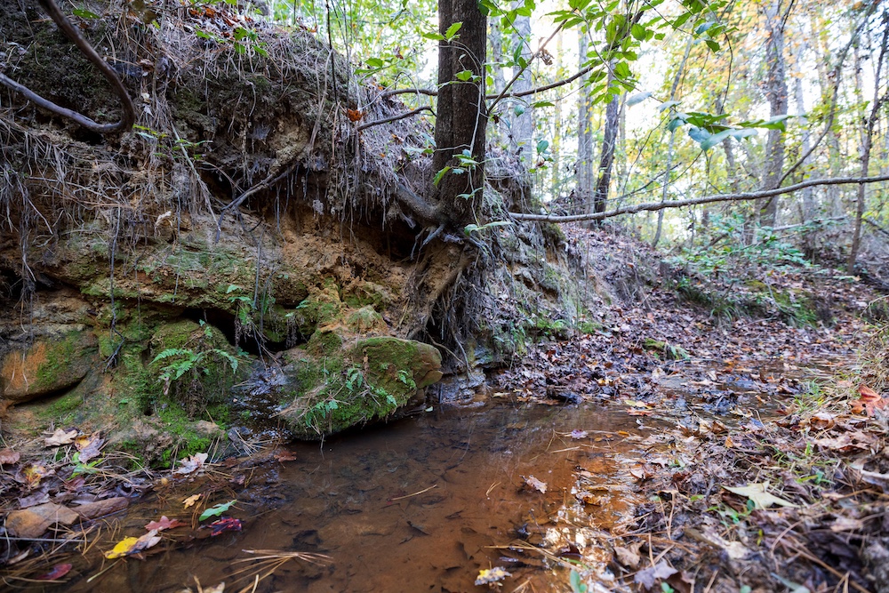 - Small pond plus spring-fed drainage with potential for larger water feature