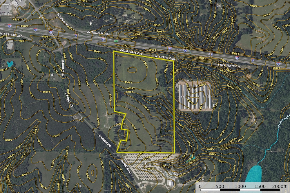 The property’s direct visibility from Interstate 20 and frontage along the I-20E service road significantly expand its potential uses. Whether for commercial, light industrial, equipment storage, or a business seeking high-traffic exposure, the location offers notable advantages. Access from CR 3101 on the southwest corner further enhances layout flexibility for future development. While the property is also well suited to a private homestead or agricultural operation, the combination of highway visibility and multi-access points creates uncommon opportunity for buyers looking to blend residential and commercial objectives or explore a standalone commercial project.