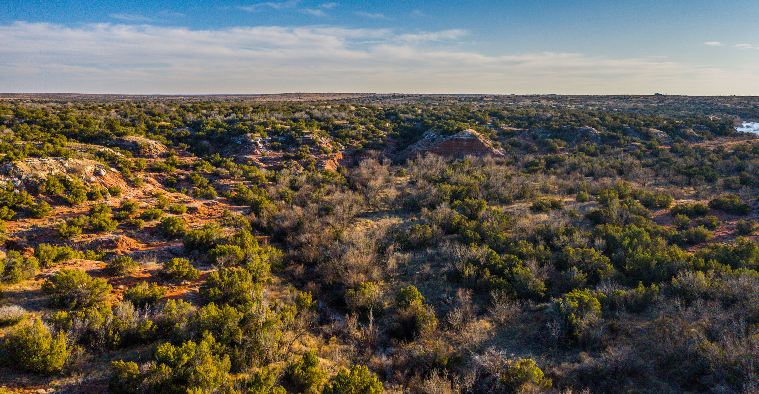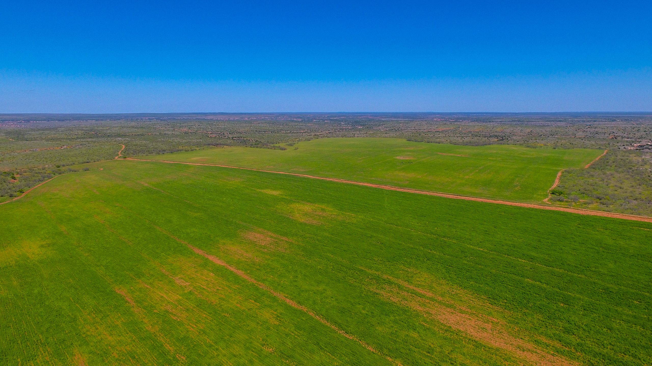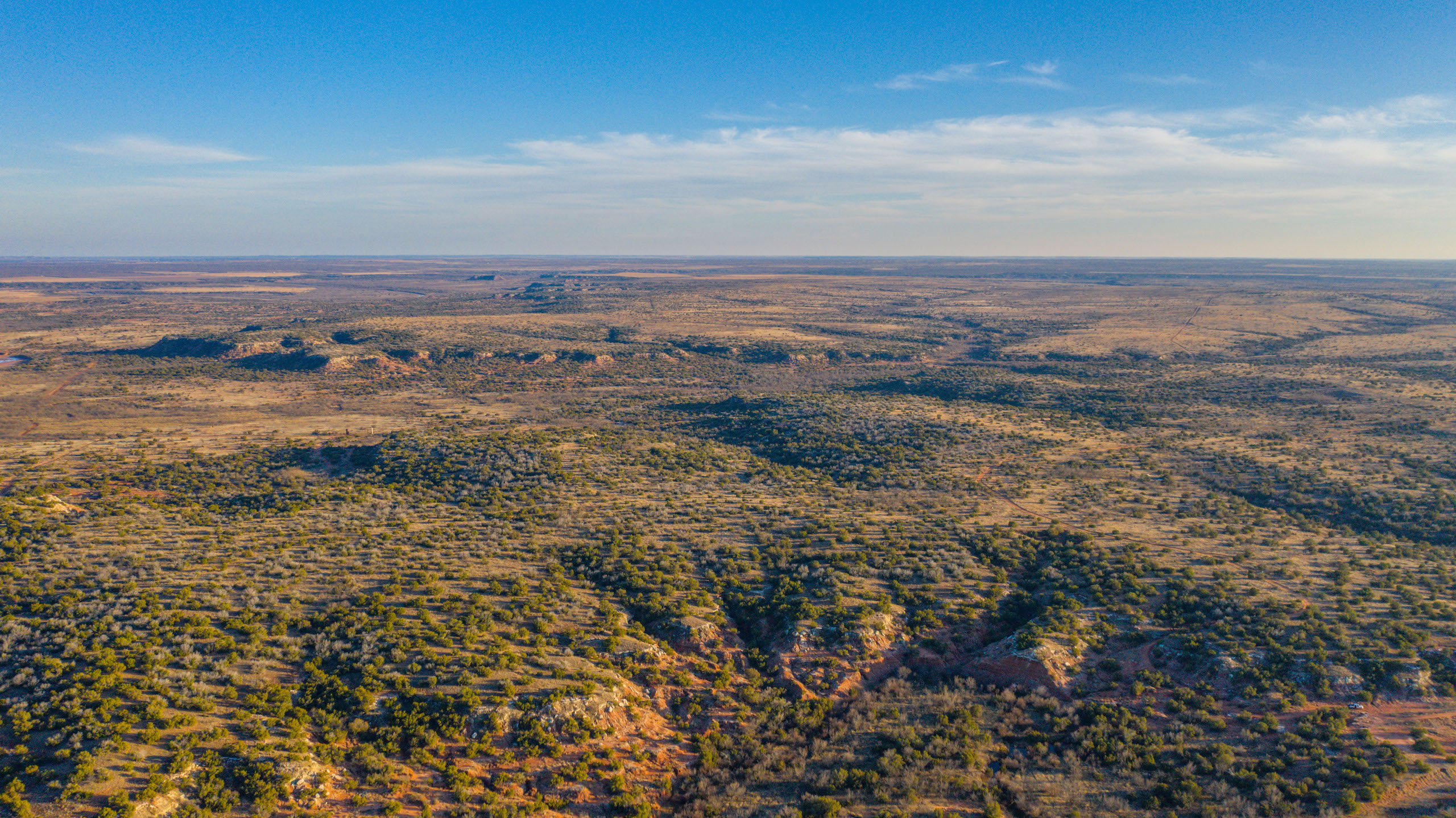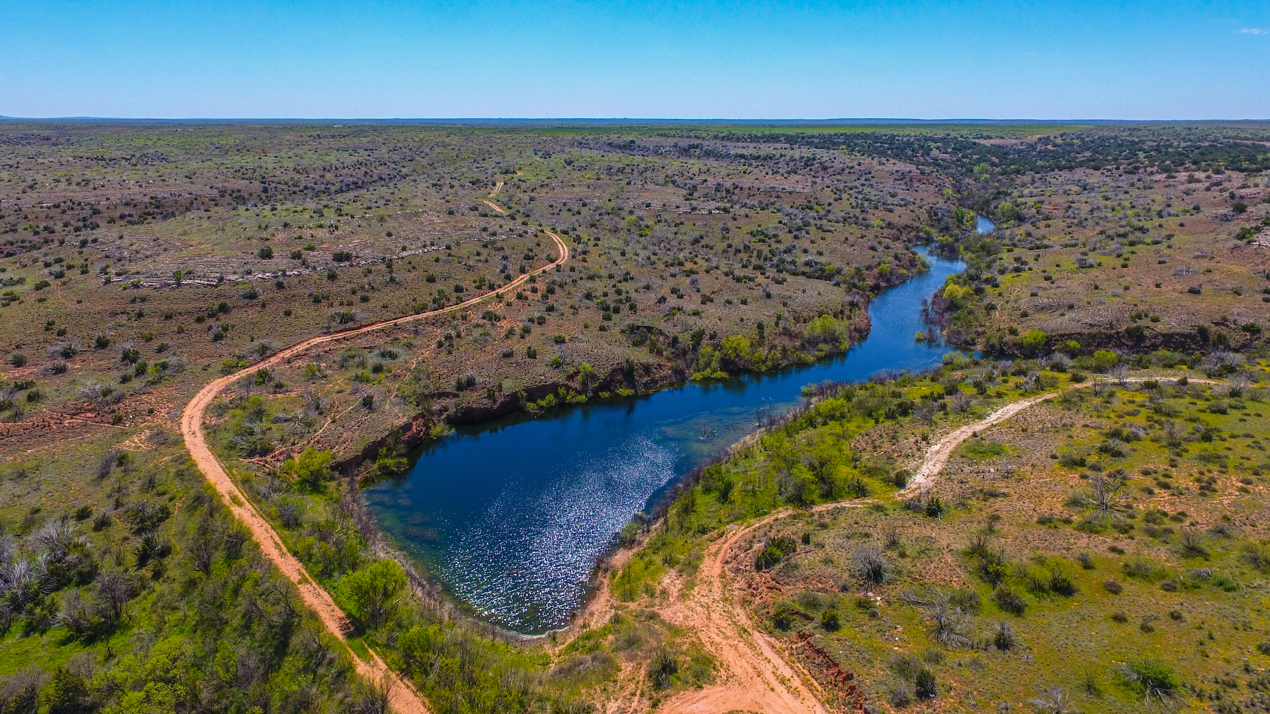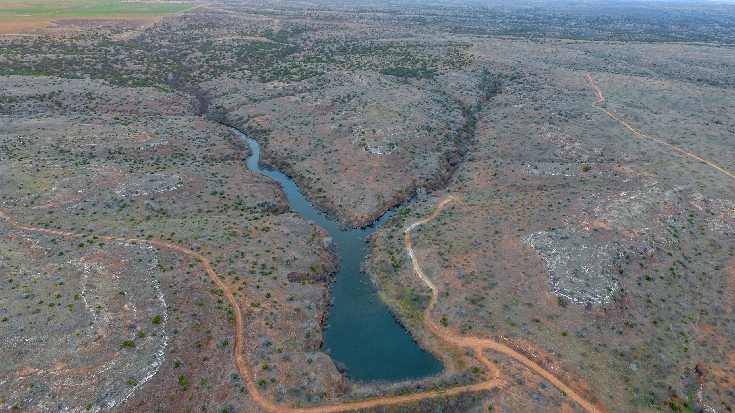 Land: The ranch offers a diverse landscape with a great mixture of rolling uplands, improved pasture, mesquite flats, tillable fields, miles of creek bottoms, and expansive canyons. With nearly 300 feet of elevation change found throughout the ranch, the high bluffs overlooking the canyons and creek bottoms create vast, unrivaled views. Surface water is superior for the region with three major creek drainages and numerous dirt tanks and lakes built in nearly every pasture. The ranch has historically run a large cattle operation with the necessary infrastructure, cross-fencing, and water troughs in place to easily support 325+ head. The wide-ranging native habitat and cover mixed with an abundance of surface water are ideal for wildlife management and craft a true recreational paradise.