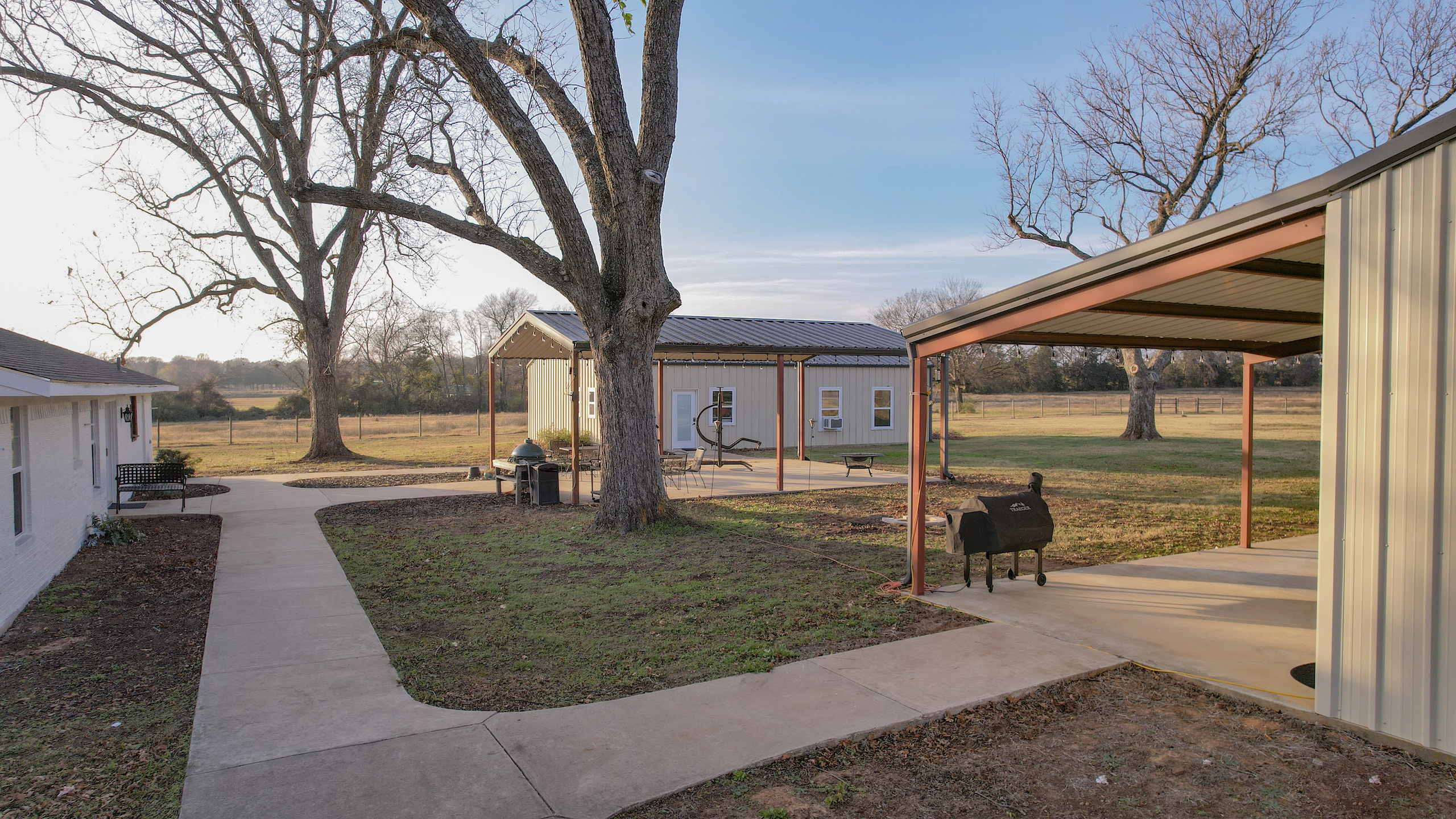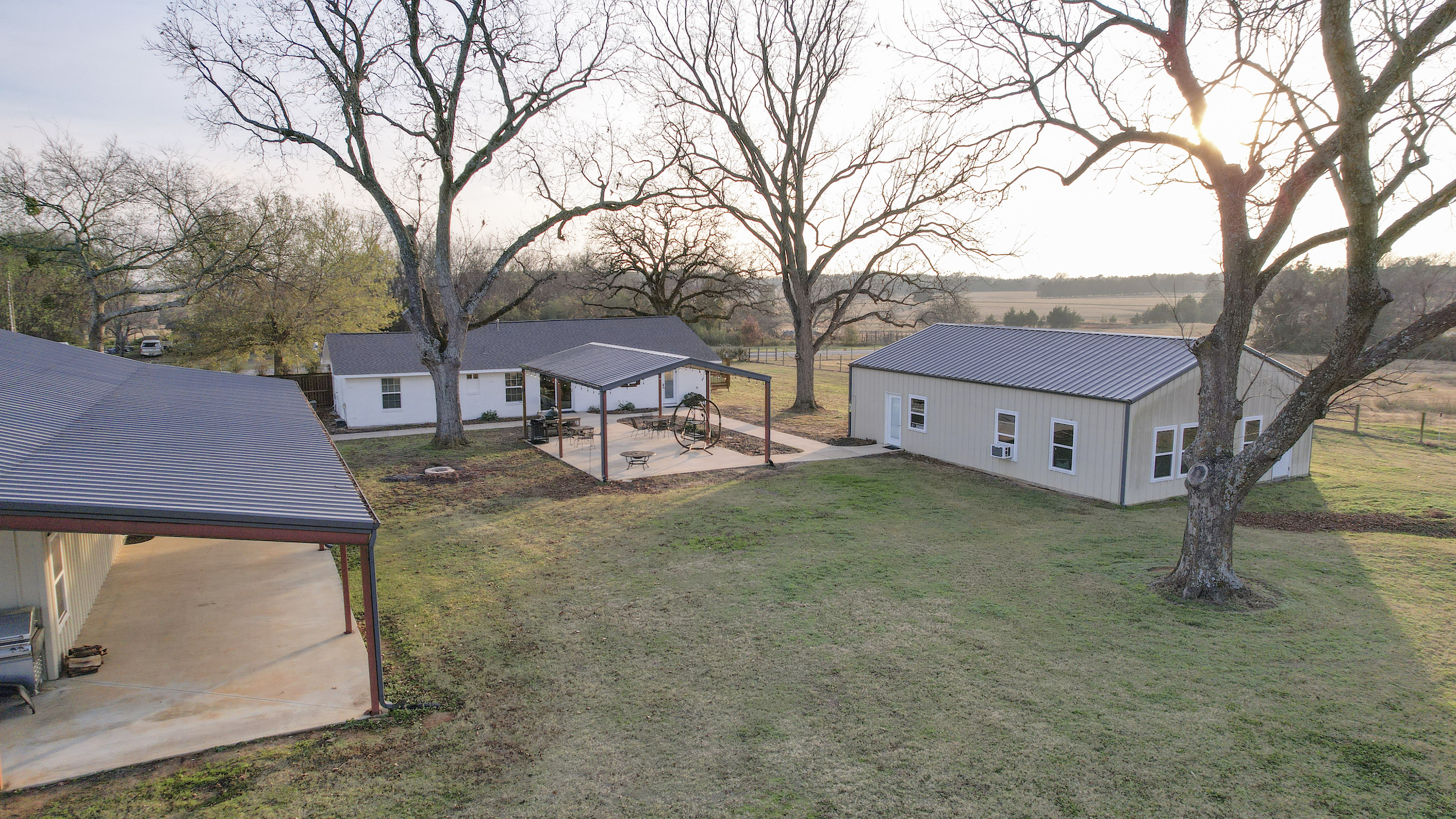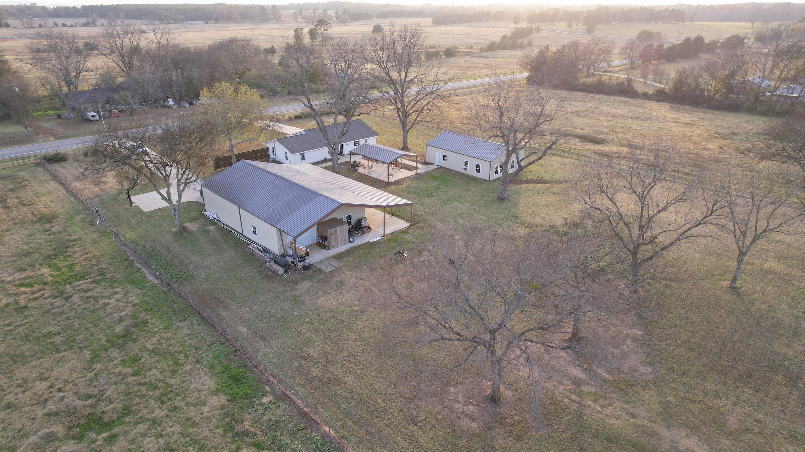 This beautiful country home is located only a few minutes from Lake Bob Sandlin and Cypress Springs. The main home is a 2 bed 1 bath that has been completely remodeled and has new high-end appliances. The other living space is located in a large shop with a 3-bedroom 3-bath living area. Each room has its own door leading out to the large 15 x 60 covered porch that faces the back yard. There is a great outdoor living space, with concrete sidewalks and a central pavilion that is a great place for cooking and gathering. There is also another 30x45 shop that makes for a great storage area. Both shop buildings are steel construction and have spray foam insulation. The yard around the house is completely fenced off and from the back offers a beautiful view of the rest of the property. There are three fishing ponds located on the property with the largest being around 1.75 acres. A creek meanders through the back of the property giving a change of scenery and water for the wildlife. A healthy deer and hog population on and around the property has provided the owners with some great hunting and shooting every year. The location couldn’t be better for someone looking for enough room to stretch out and enjoy the land and still be only a few minutes away from the two popular lakes, where you can enjoy fishing and boating. This is a great place for recreation or relaxation with enough room for the whole family. Don’t hesitate to call on this one.
