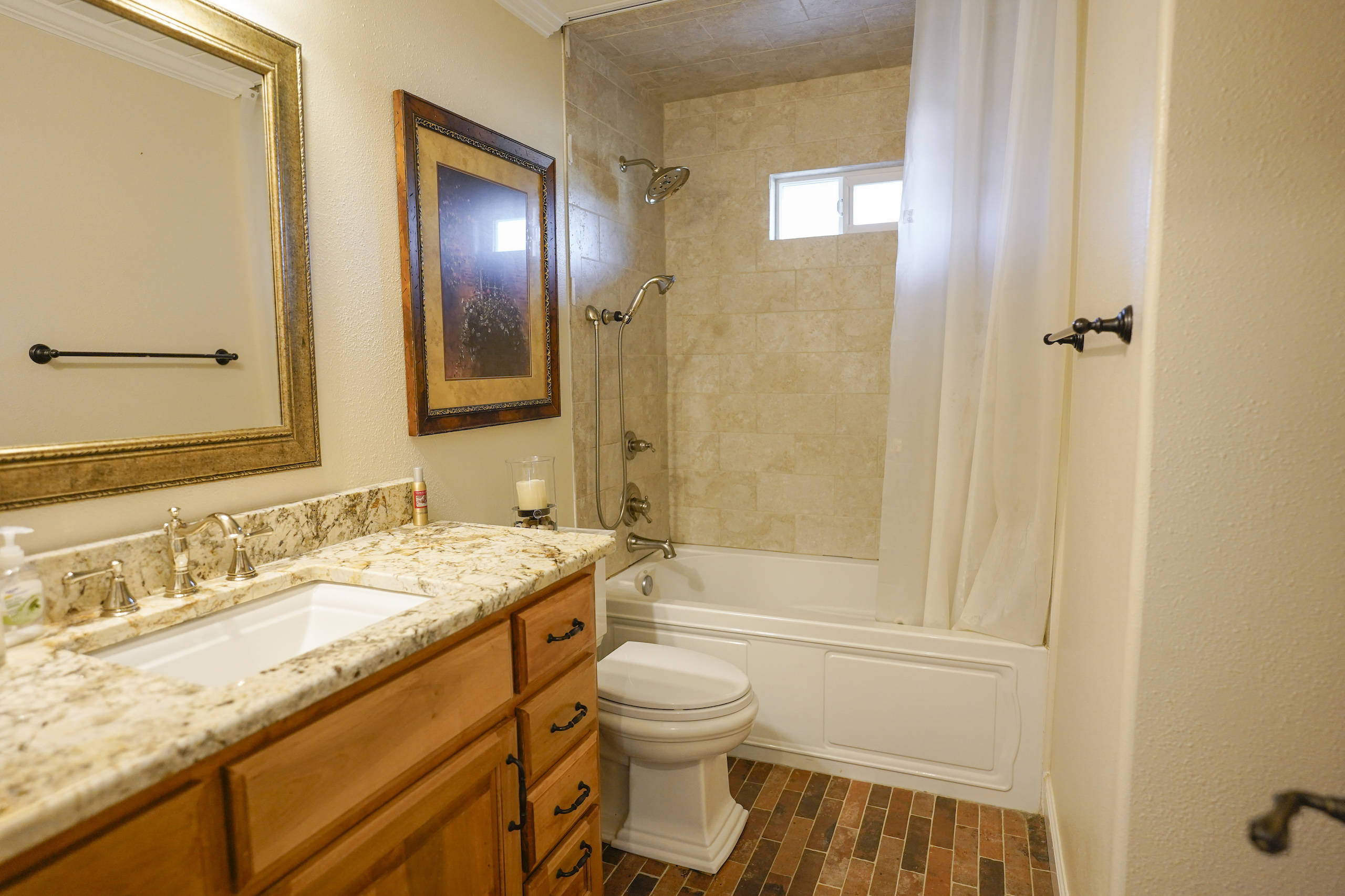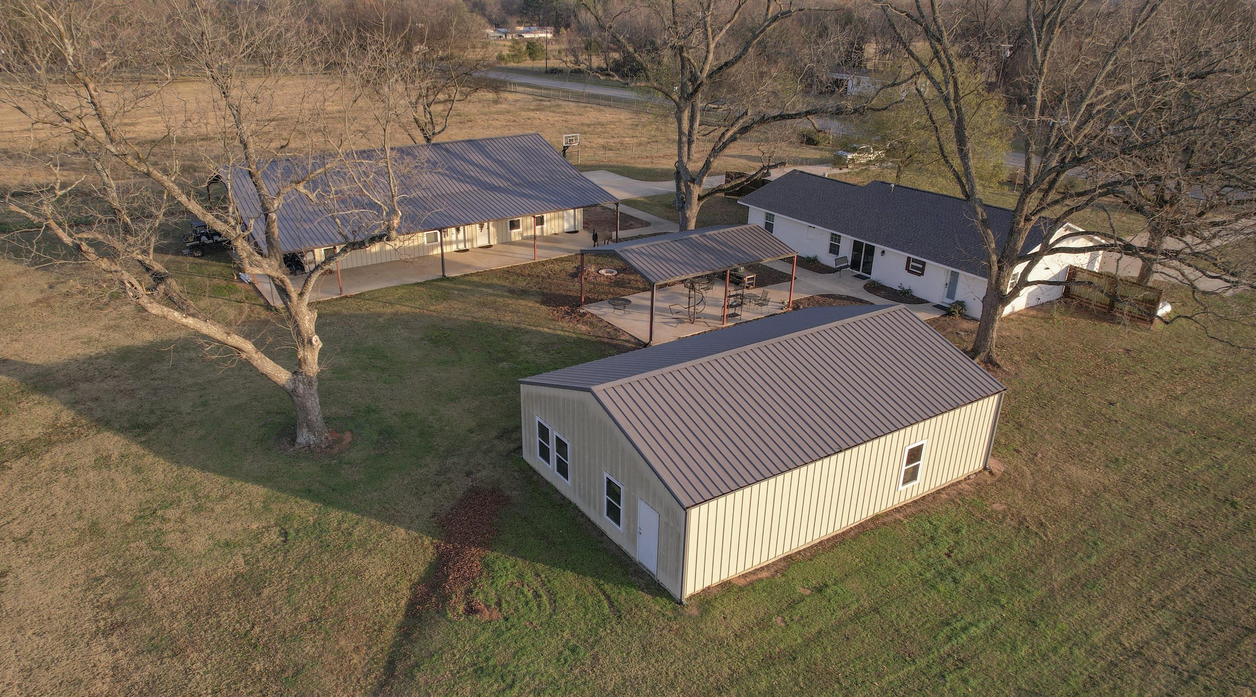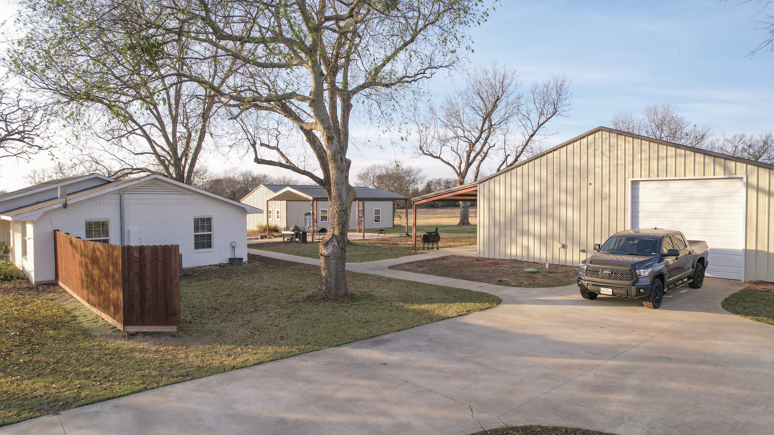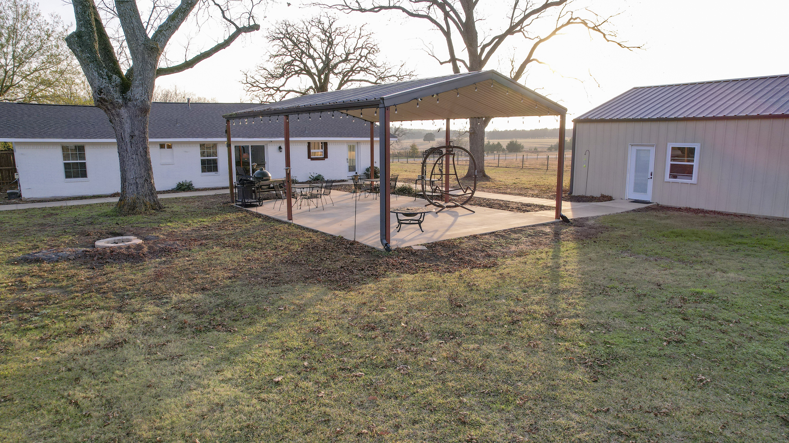 This beautiful country home is located only a few minutes from Lake Bob Sandlin and Cypress Springs. The main home is a 2 bed 1 bath that has been completely remodeled and has new high-end appliances. The other living space is located in a large shop with a 3-bedroom 3-bath living area. Each room has its own door leading out to the large 15 x 60 covered porch that faces the back yard. There is a great outdoor living space, with concrete sidewalks and a central pavilion that is a great place for cooking and gathering. There is also another 30x45 shop that makes for a great storage area. Both shop buildings are steel construction and have spray foam insulation. The yard around the house is completely fenced off and from the back offers a beautiful view of the rest of the property. There are three fishing ponds located on the property with the largest being around 1.75 acres. A creek meanders through the back of the property giving a change of scenery and water for the wildlife. A healthy deer and hog population on and around the property has provided the owners with some great hunting and shooting every year. The location couldn’t be better for someone looking for enough room to stretch out and enjoy the land and still be only a few minutes away from the two popular lakes, where you can enjoy fishing and boating. This is a great place for recreation or relaxation with enough room for the whole family. Don’t hesitate to call on this one.