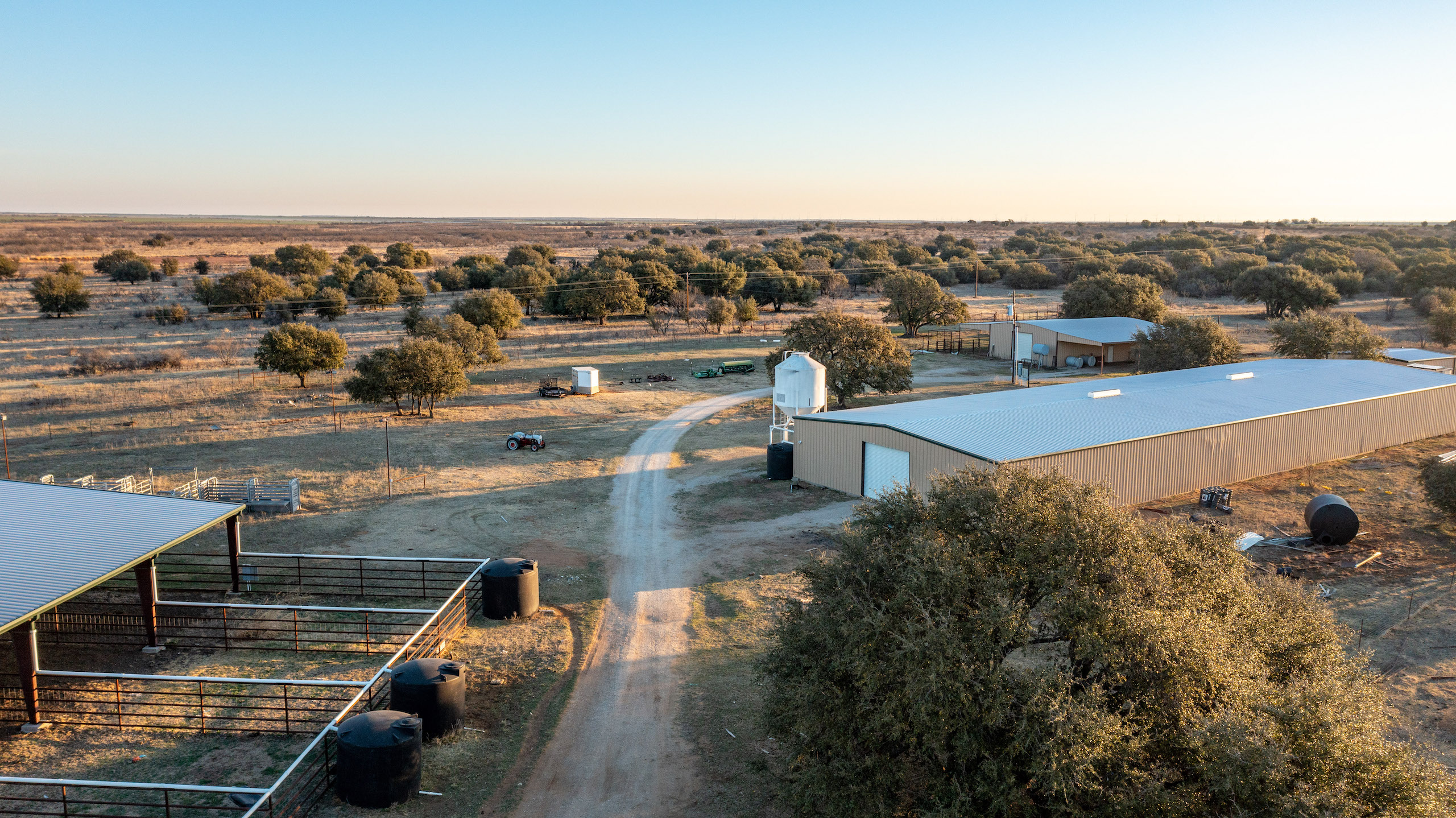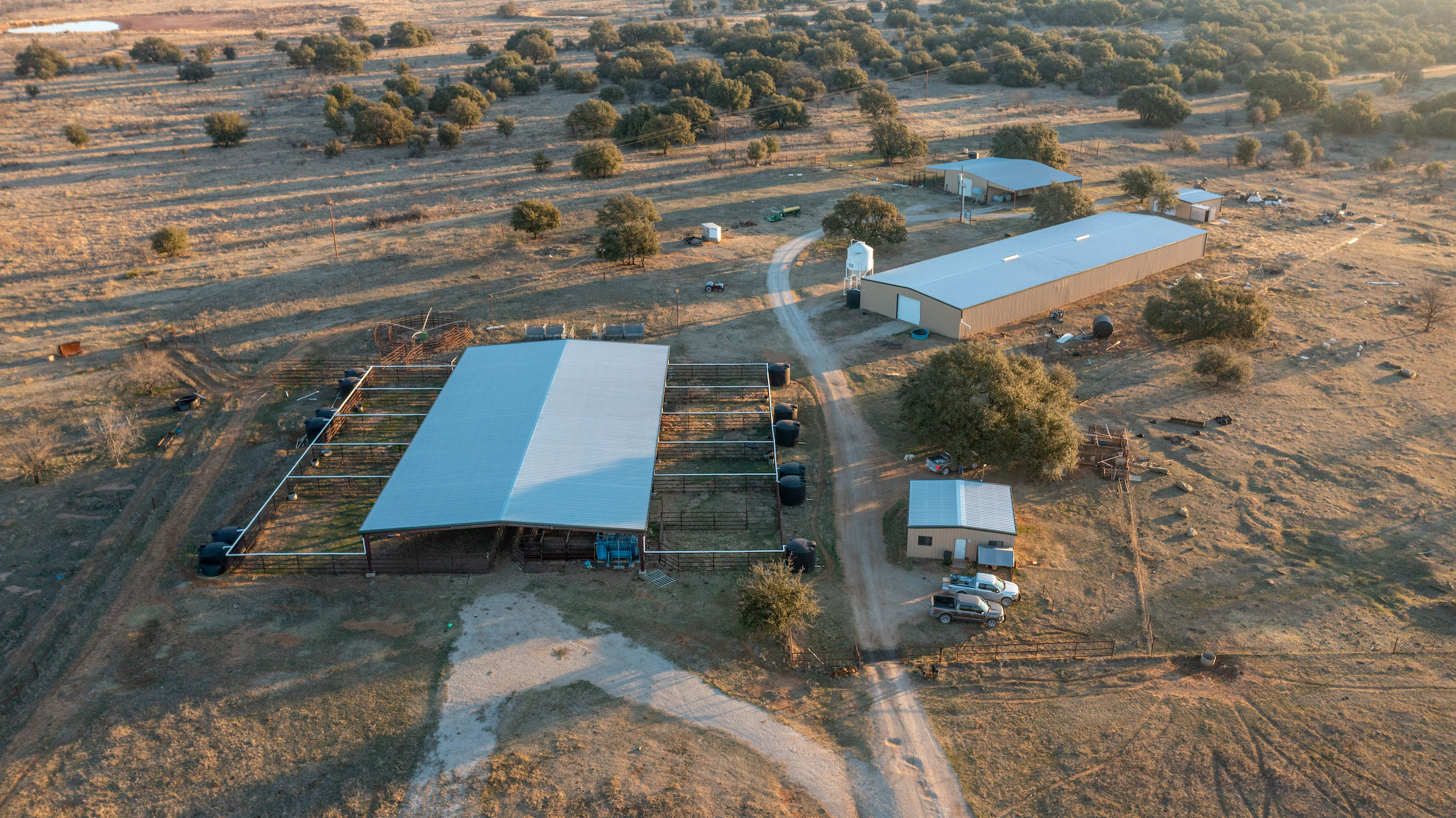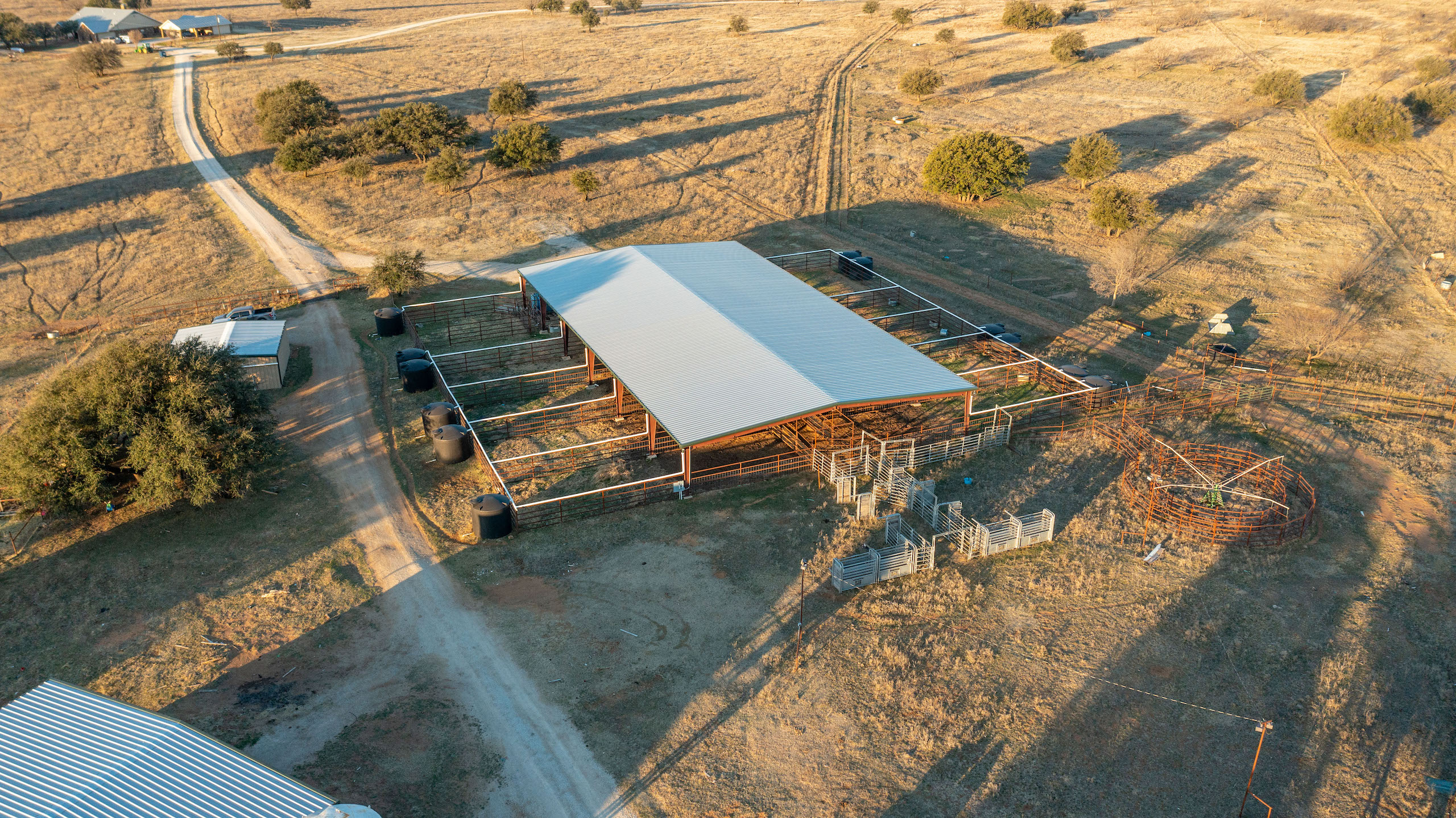 - 12,000 sq ft covered pens, 12,000 sq ft barn, 2400 sq ft barn and foremans living quarters/office, several other sheds and outbuildings