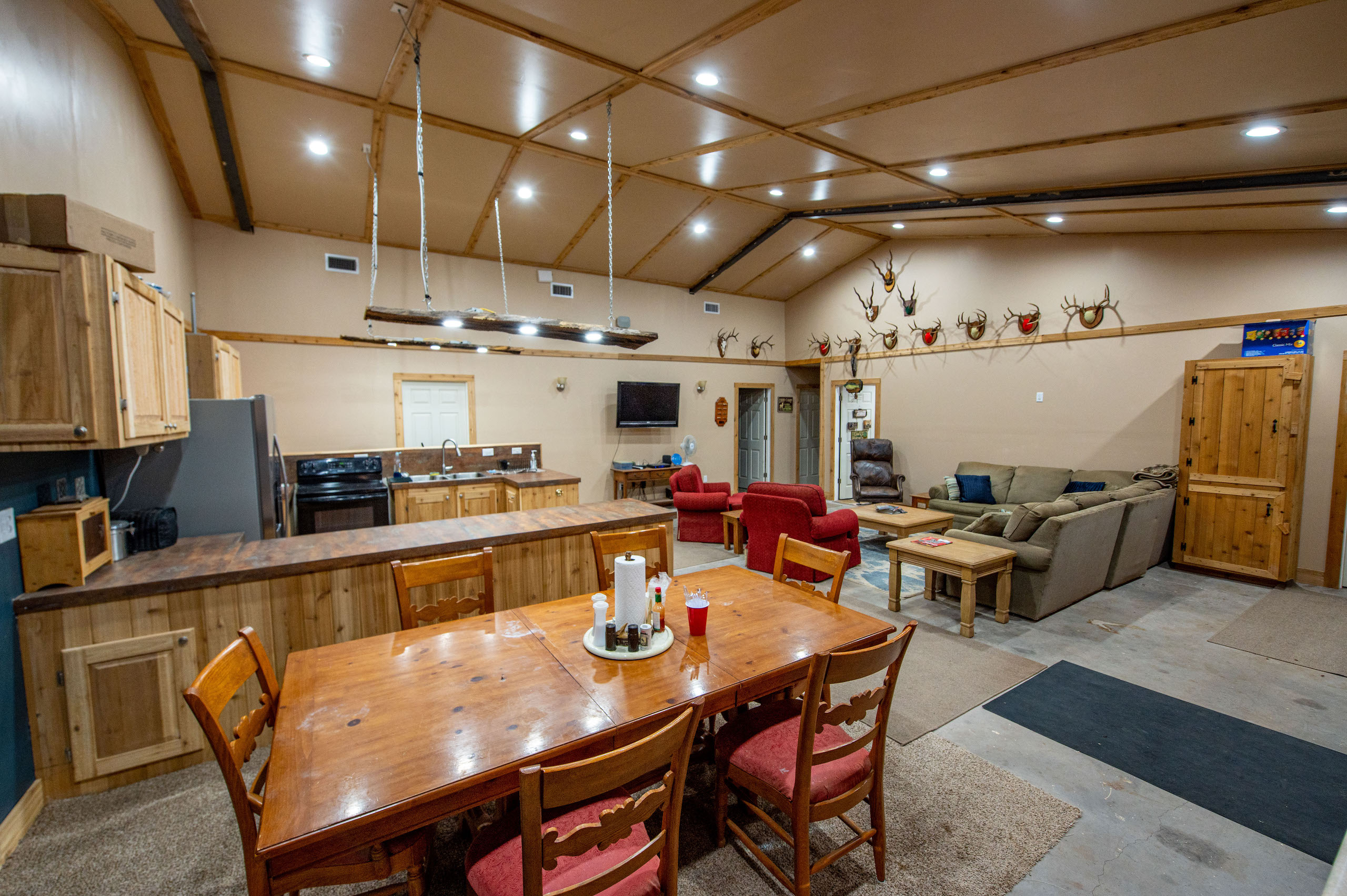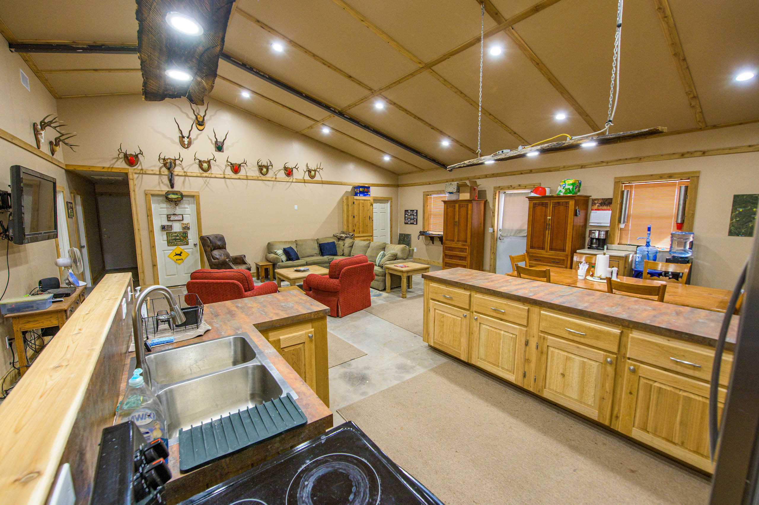 - 7/3 hunter’s lodge with game cleaning station and garage for ATV’s