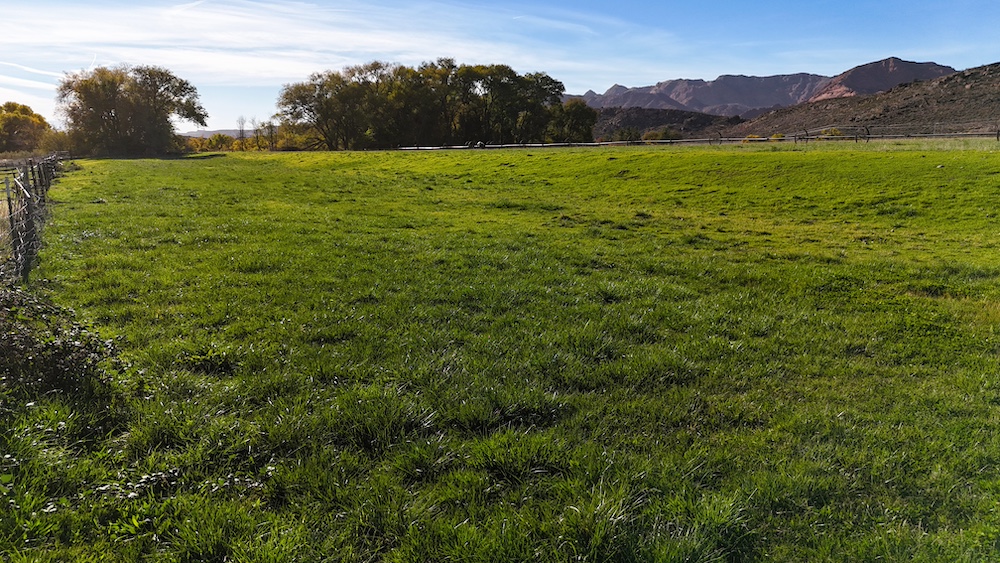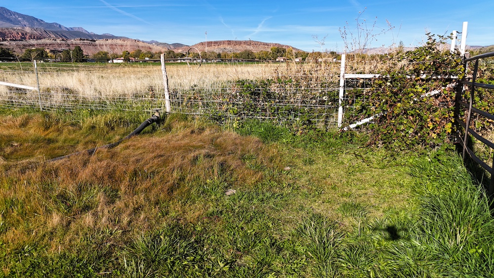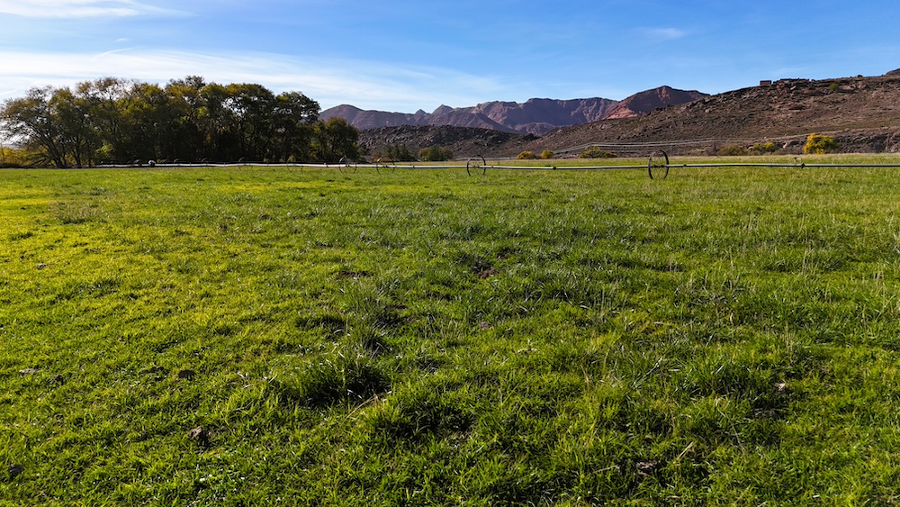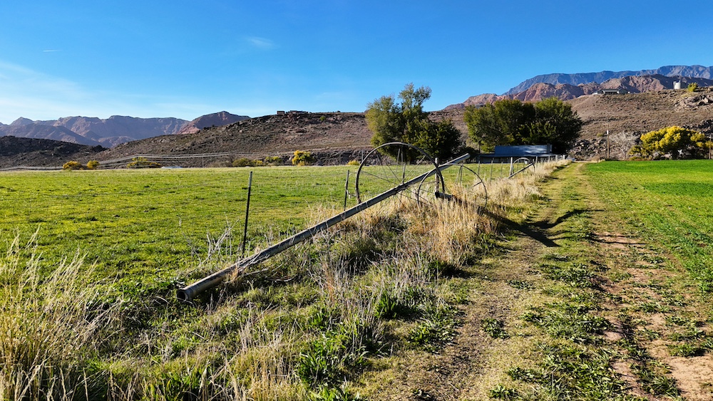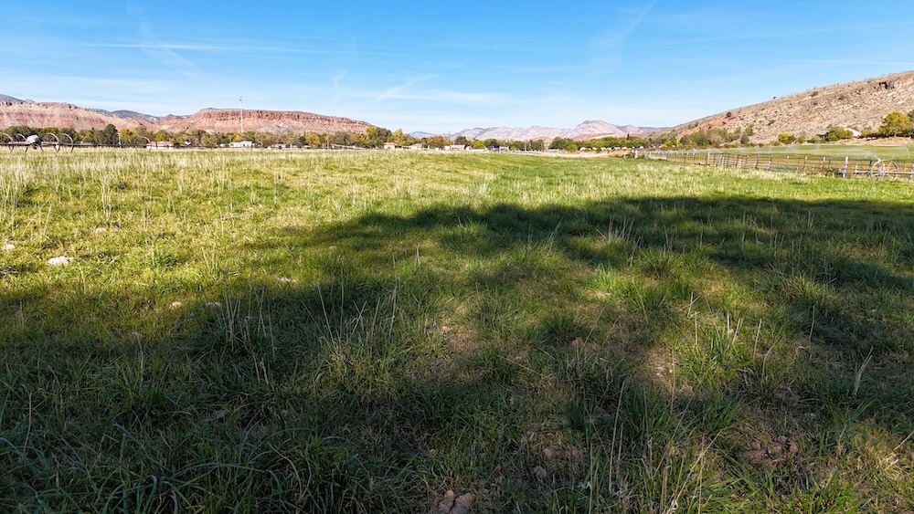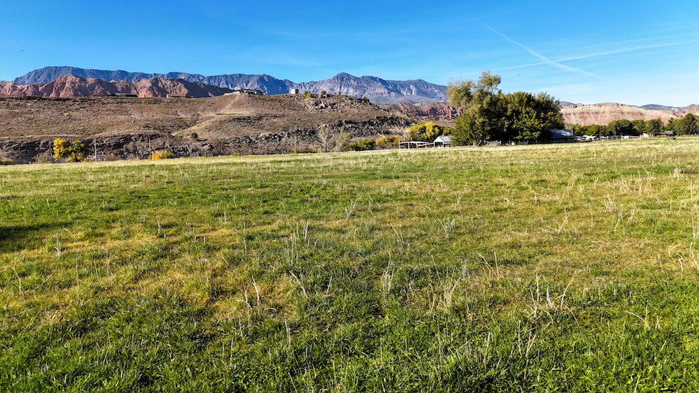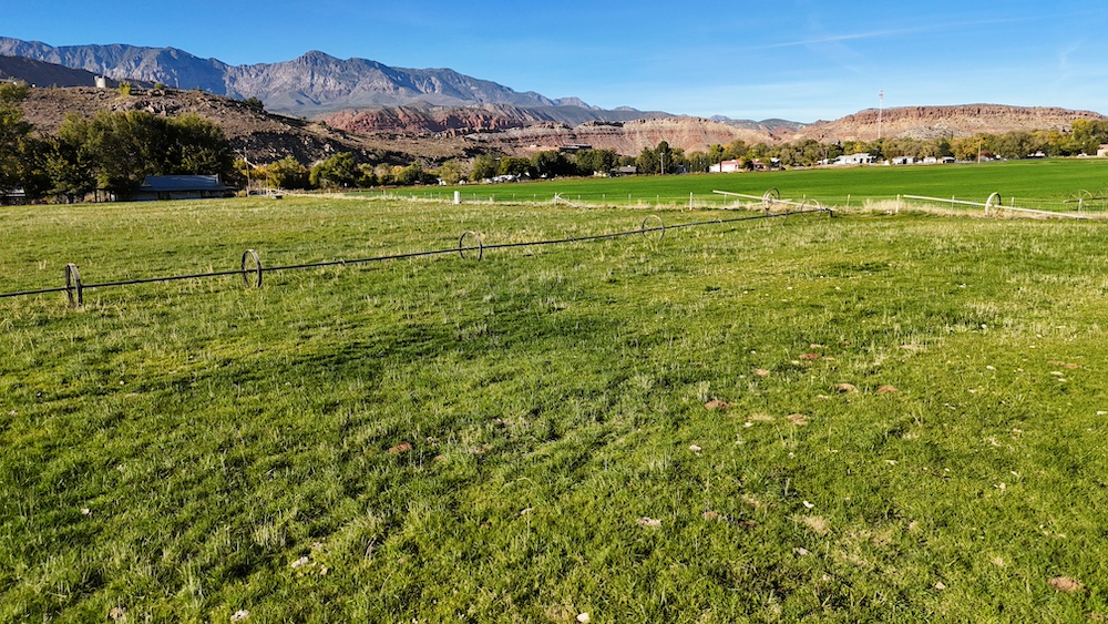 The terrain is primarily level, which may reduce grading needs depending on the intended use. Views from the property include surrounding red rock formations and open skies typical of southwest Utah. The soil quality reflects its agricultural past and may support continued farming, hobby agriculture, or landscaped residential uses where permitted.