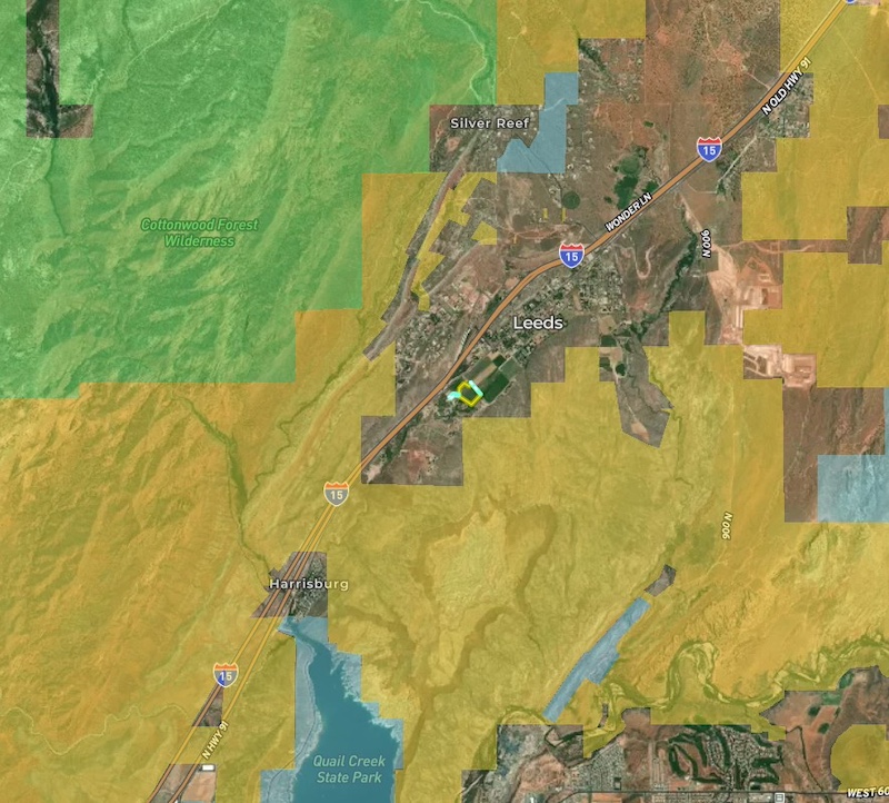 This 10-acre property is located within the city limits of Leeds, Washington County, Utah. The parcel has a long history of agricultural use and features mostly flat ground with productive soil characteristics. The parcel is just minutes from Interstate-15, with convenient access to both north- and southbound onramps. The layout and zoning provide flexibility, allowing the property to remain intact as a single rural holding or be divided into several 1-plus-acre lots, subject to city approvals and required improvements.