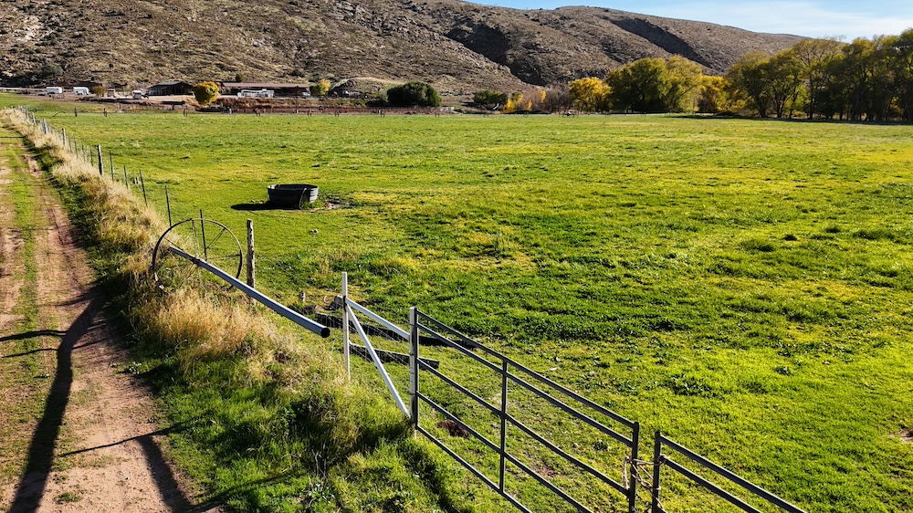 City water is available to the property, which supports both residential considerations, while Senior Priority private water shares support the agricultural production. Electrical power is located nearby and could be extended to future building sites. Sewer service is not available, and development would require individual septic systems. Some road improvements would also be necessary before subdivision or construction, and buyers should verify all requirements with the City of Leeds.