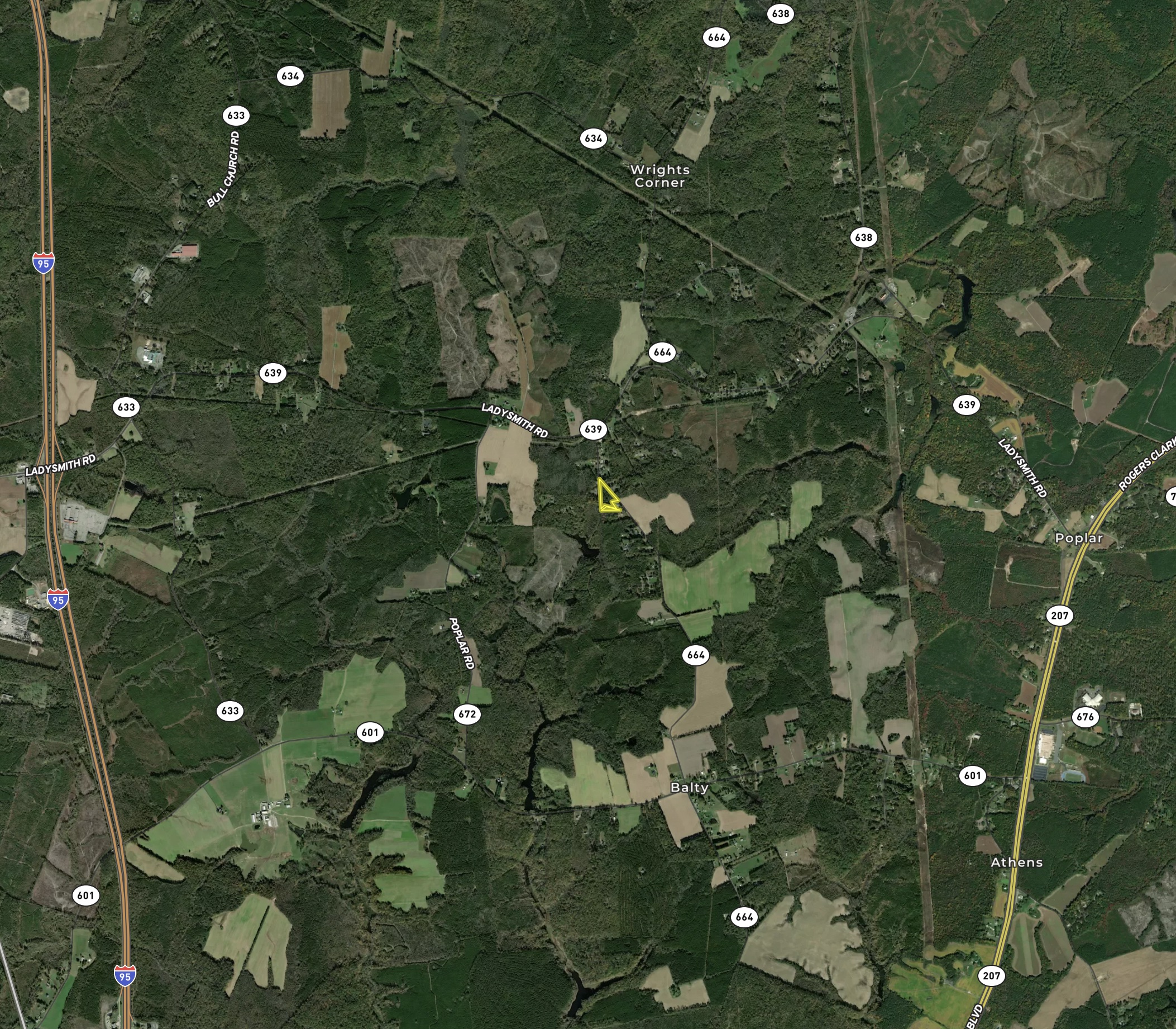 This property is not just a piece of land; it's a canvas for your imagination. With extensive road frontage, a reliable power supply, diverse timber, strategic location near I-95 and Ladysmith Exit, gentle rolling terrain, and a well-thought-out drainage plan, it offers everything you need to turn your vision into reality. Don't miss this chance to secure a slice of tranquility and potential – make your dreams come true on this remarkable piece of real estate.