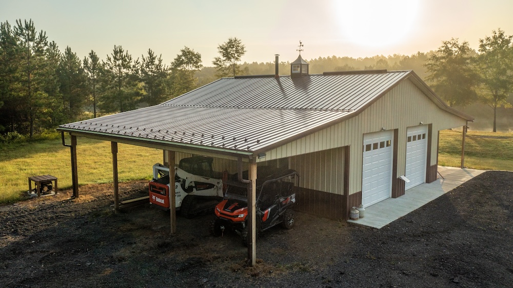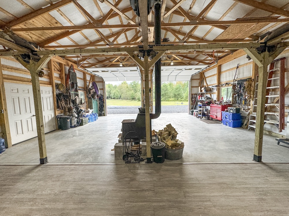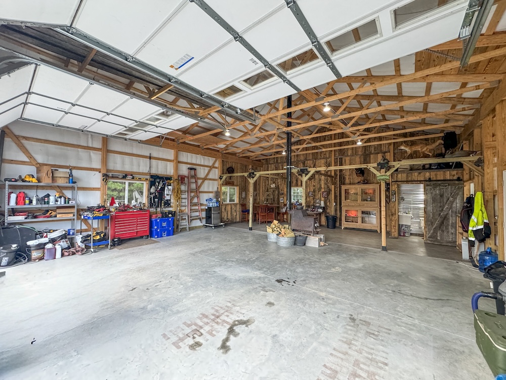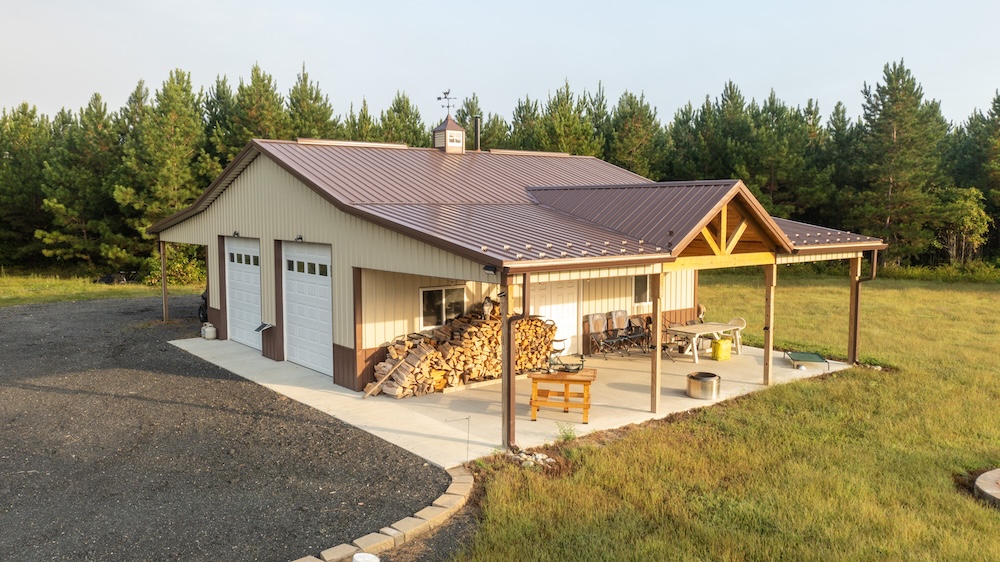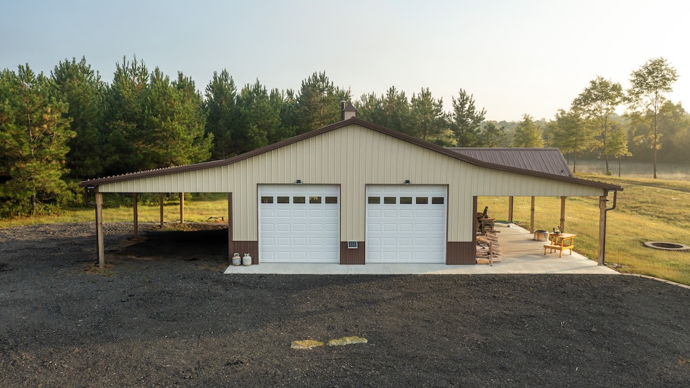 - Newly built 30 x 36 Amish post and beam lodge (2023), solar-powered, with front porch and covered lean-to