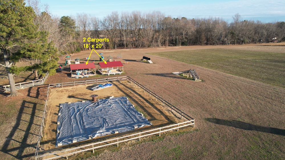 - 2 metal carports each measuring 18’ x 20’