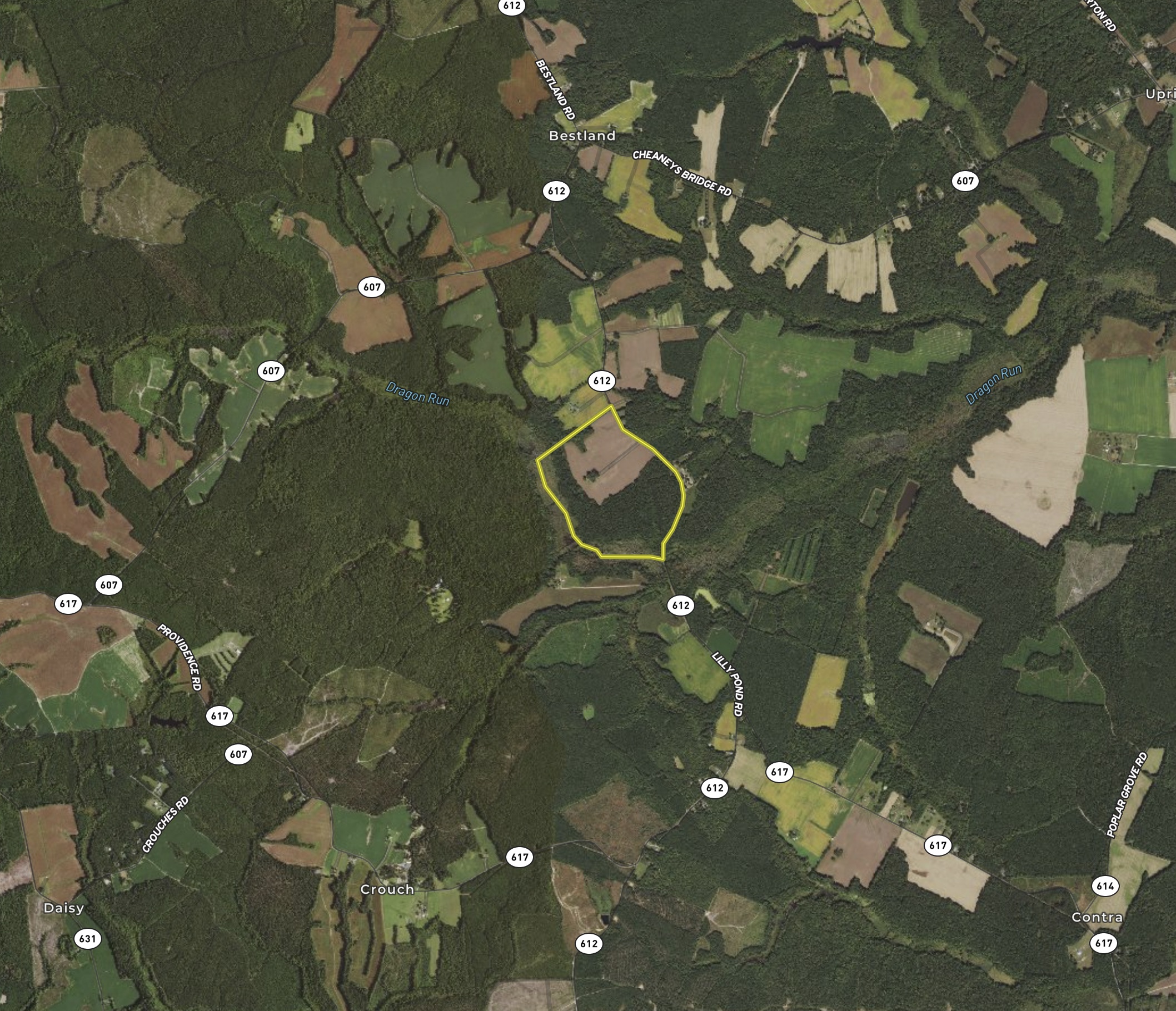 DISCLOSURE: An updated survey will need to be conducted, and the acreage is based on the deed. Campers and hunting hound kennels located on the property belong to Bestland Hunt Club and are not to be included in the sale of the property. It will be up to the new owner to decide if they would like for Bestland Hunt Club to continue leasing the property. Still, if not, they will be given written notice from the lessor terminating the lease agreement and asked to remove all of their personal property from the premises before settlement. This parcel is currently being leased for farming. Potential buyers are not to interfere or destroy leasee’s soybean crop as that is his personal property until harvested and removed from the property.