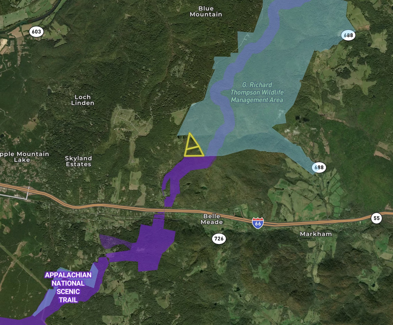 Rare opportunity to own a truly unique property that has over 1,800 ft of Appalachian National Scenic Trail frontage with a gorgeous and unique A-frame cabin. Not to mention there is over 2,450 ft of G. Richard Thompson Wildlife Management Area frontage along the entire eastern border allowing for expansive hunting opportunities. The acreage is made up of two separate parcels that are being advertised and sold together. The cabin offers nearly 1500 sq ft of living space containing two bedrooms, two bathrooms, a kitchen and a living/dining combo area. Constructed back in 2000 with its own private well and conventional septic suitable for up to a 3-bedroom home. As you walk out onto the back porch, you’ll conveniently find an above-ground pool and hot tub making for a great place for barbecues and family gatherings. Situated extremely private and secluded as these parcels are the last two tracts located at the very end of Tuckers Lane. An excellent location for a rental cabin with excellent short-term rental potential as an Airbnb. Located only minutes from Skyline Drive and the town of Front Royal with easy access to I-66. The Appalachian National Scenic Trail is within walking distance of the cabin, making the property's location ideal for those who are hiking and outdoor enthusiasts. This property will convey in “AS-IS” condition. All inspections will be for informational purposes only with the right to void the contract and be paid for by the purchaser. For more information or to schedule a private showing, please call today.