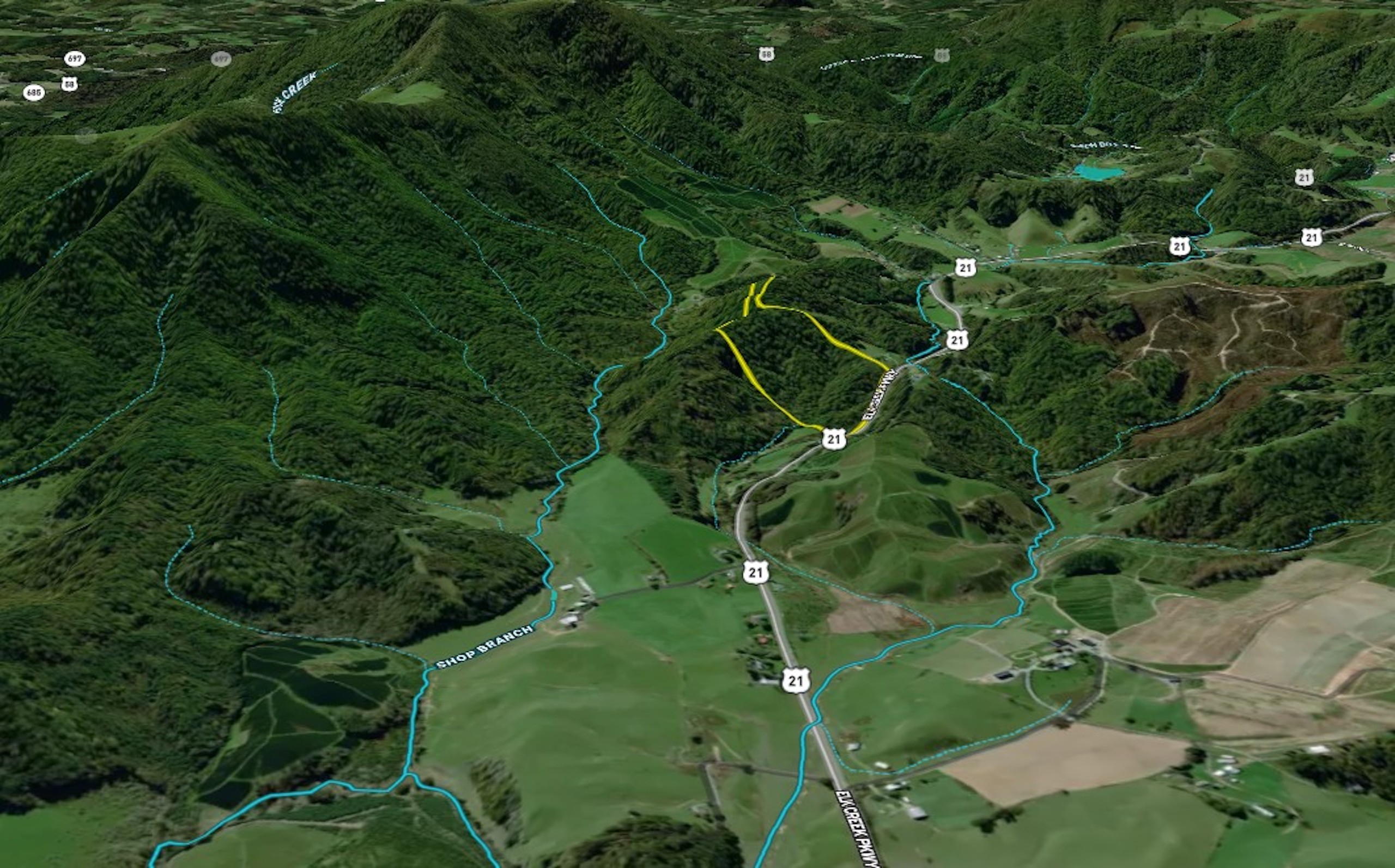 An incredible tract of land located just a short distance from all the wonderful activities around Grayson Highlands State Park. This property has so many wonderful features such as substantial road frontage on Elk Creek Parkway as well as additional frontage on Discovery Lane. This allows different points of access for recreation of for driving up to your future home. The land has several rolling hills complete with small creek/springs that meander in the drainages. Existing trails provide the ability to walk the property and with a little work these would easily become passable with a vehicle or large ATV. Substantial views and wildlife activity provide even more enjoyment to this tract of land for the hunter or enthusiast. Existing timber stand includes diverse species of hardwoods a few pines here and there and of course some mountain laurel. The current timber does have mast producing oaks which attract the wildlife! Plenty of places to hike and take a break along the boulder formations and simply enjoy being outdoors. We haven’t even gotten to location yet! Excellent road frontage in short distance to Grayson Highlands State Park, White Top Mountain, as well as the highest peak in Virginia, Mount Rogers.. Two of the regions most popular hiking and outdoors recreation areas. Yuu will not run out of things to do in the region from hiking, hunting, fishing, horesback riding and so much more! Property has existing survey as well as perk test for 3BR home. ** Boundary lines drawn are approximate, buyer to verify all details**