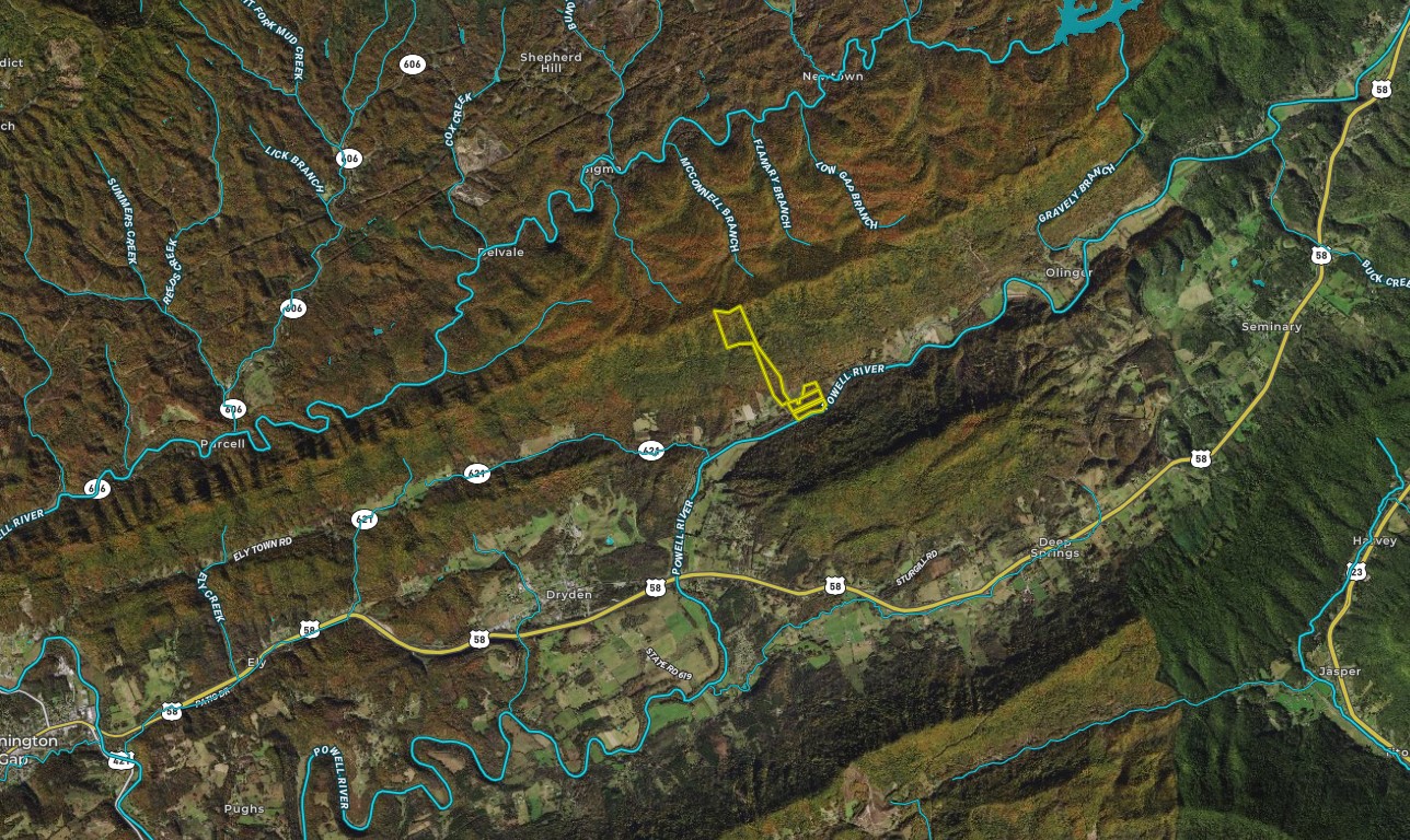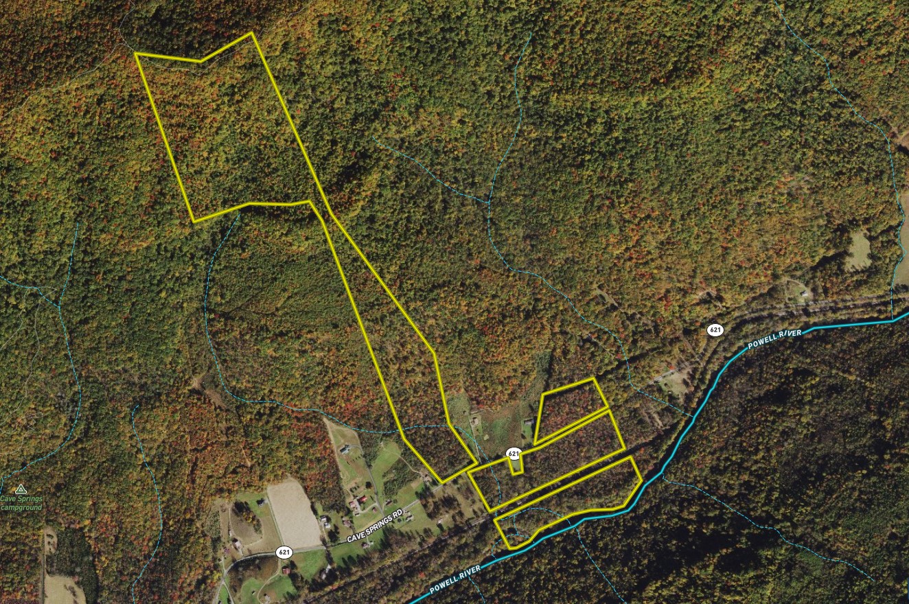 Have you ever wanted one property that can do it all? This property is a large tract of recreational land on both sides of Cave Springs Road and includes over 1,000 feet of Powell River frontage for fishing, camping and just enjoying the wildlife. I saw bald eagles and plenty of wildlife sign while walking the river bottom. The river is mostly known for catfish and bass, but also includes the possibility of muskie and a few other species. The topography on the lower sections is really gentle, mostly flat on the southern side of the road and then a large portion is also very flat on the north side until the land begins to rise up to the mountain top. There are multiple building sites on the property which could be ideal for someone looking to relocate and have more than one home on the same parcel of land. Additionally, the parcel has access to water and power at the road for easy connectivity to the public utilities. If this isn’t enough, the timber looks to be very marketable and owners state it was never timbered during their ownership of close to 100 years. This is a property is also convenient to Pennington Gap but feels very rural and remote. If you are an ATV riding enthusiast there are some great public riding trails in the vicinity that would be quick access and fun for the family getaway. Let us show you this one-of-a-kind property.