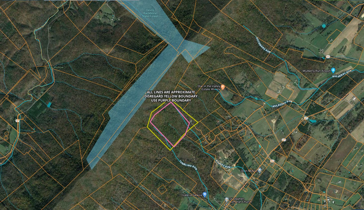 - Near the 749 +/- acre Devil’s Backbone State Forest where no hunting is allowed