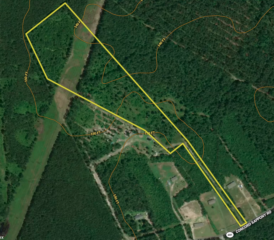 - Approximately 900’ of private driveway and 50’ of frontage along Concord Sappony Rd (Rt. 681)
