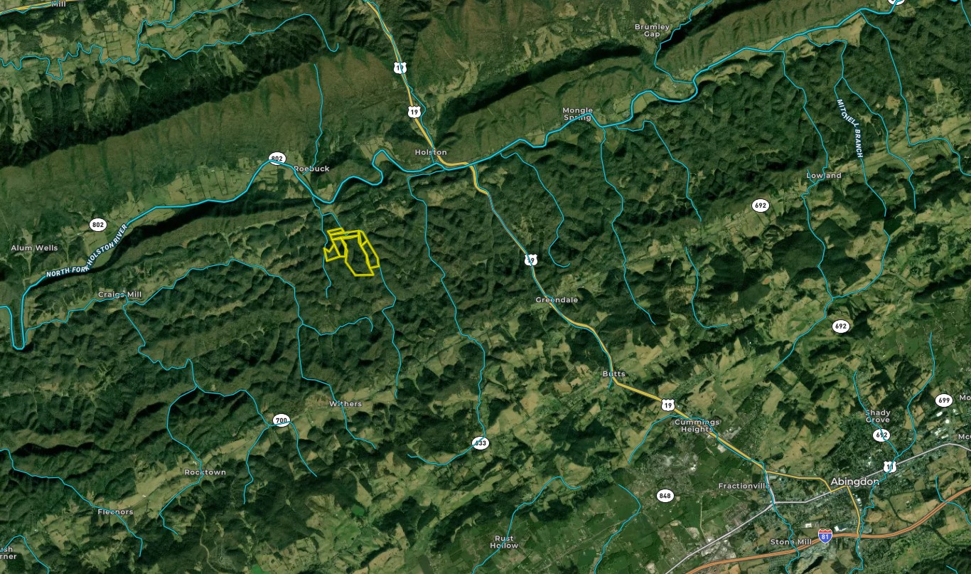 This property is ready for enthusiasts to come enjoy the great outdoors. Substantial road frontage on Large Hollow Road provides the new owner endless options. Located just outside of Abingdon makes this a very desirable property. This area is full of recreational opportunities and is minutes away from a very charming community for dining and entertainment. Nearby is the North Fork Holston River, the lovely town of Damascus, the Virginia Creeper Trail, tons of hiking and biking trails, and countless trout streams. Additionally, Bristol is not far away and is well known for country music, bluegrass festivals, and the Speedway. This property has a very nice gated entrance that allows for privacy as well as plentiful ATV trails throughout, making this a very accessible large tract of land. The forest is a mixed growth, some very mature and marketable as well as some younger growing timber, providing a balance for wildlife. During the inspection, it was obvious that deer, turkey and bear call this mountain property home. Within the boundaries of this property, there are multiple water sources, including springs and creeks that create incredible picnic areas, scenic views and plenty of water for the wildlife. A very reasonable price per acre on this property makes this an attractive large tract of land. Buyer/Buyer’s Agent to verify boundaries and acreage.