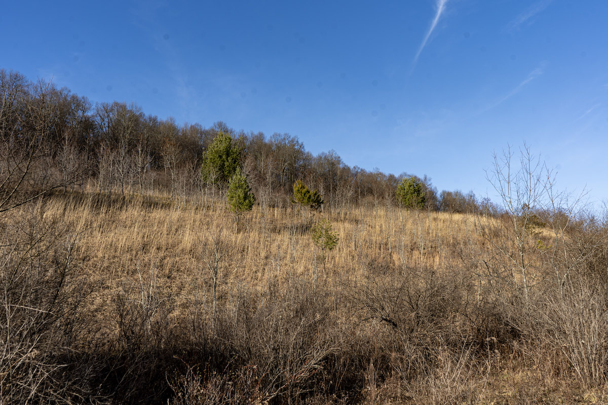 - Mix of open fields and wooded terrain