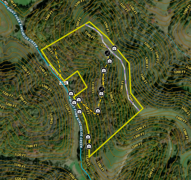 - • Scale (1 to 5): Road Access: 3/5 (gravel road to the property); Interior UTV access: 4/5; Cabin Potential: 3/5; Permanent Residence Potential: 3/5; Steepness of Terrain: 3/5 (fairly steep surrounding cabin); Timber Quality: 3/5; Cell Reception: 2.5/5