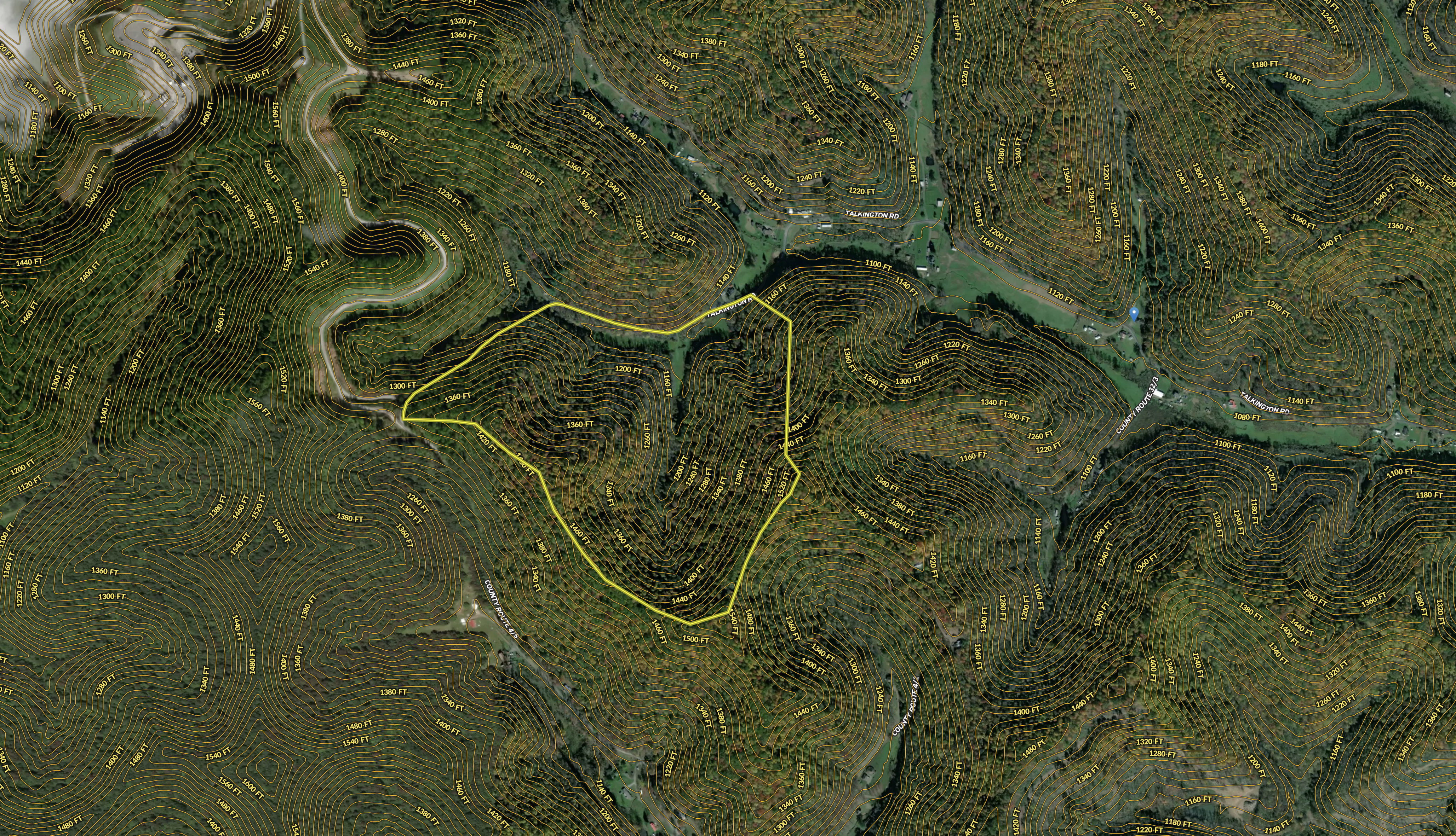 This property is secluded and has everything you’ll need when it comes to a getaway spot. The bottom of the property has a 5-acre +/- field for a food plot or building site. A stream meanders down the middle of the property and along the road frontage, which is approximately 3,000 feet of blacktop road. The property has a nice mix of hardwoods, a trail system throughout and a significant population of deer, turkeys, and small game. Call Land Specialist Tre Kerns today to schedule your showing of this great Mountaineer Country tract.