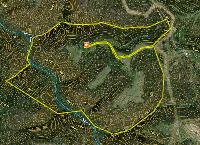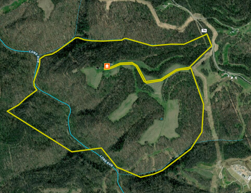 The county roads that branch off route 2 going up to this property at the top of the ridge (approximately 11 minutes / 4.3 miles) are long, winding, and steep but are paved and are well-maintained by the county. It is in a rural country setting yet only 28 minutes from New Martinsville and 37 minutes from Wheeling. The property has not had cattle or livestock in several years but the neighbor has bailed hay in recent years. The 3-bedroom, 1 bathroom house (approximately 2000 sq ft) is the original farmhouse that was built in the 1800s. It would serve well as a small permanent residence, retirement home, guest house, hunting camp, or foreman’s house. It has city water, a water well, septic system, propane heating, central air conditioning, satellite internet, and satellite TV. A backup generator is included to provide power in the event of a power outage. It was remodeled twice by the current owners over the span of forty years. The kitchen was remodeled four years ago and is in excellent shape. Although everything has been well-kept and maintained, the rest of the interior (excluding the kitchen and bathroom) could use an aesthetic update. It features older carpet, low drop ceilings, and a steep set of stairs that lead to the two bedrooms upstairs. The two bedrooms upstairs are decent sized and one has a walk-in closet, but the bedroom downstairs is small. It has a walk-in mudroom that also serves as a laundry room at the entrance, a porch, and a detached garage/workshop. Although not fancy, it is a charming little farmhouse and has everything one needs to live comfortably. The detached two-car garage was built around 1993. It has a wood burning stove and serves as both a garage and workshop. The four-bay garage was built very recently and is used for equipment, vehicle, and tractor storage in addition to extra workspace. It is not heated but does feature a bathroom. The old milking barn on the property is usable, but not in good shape and is just used for raw material storage. It could be either kept as-is for livestock, torn down, or renovated.