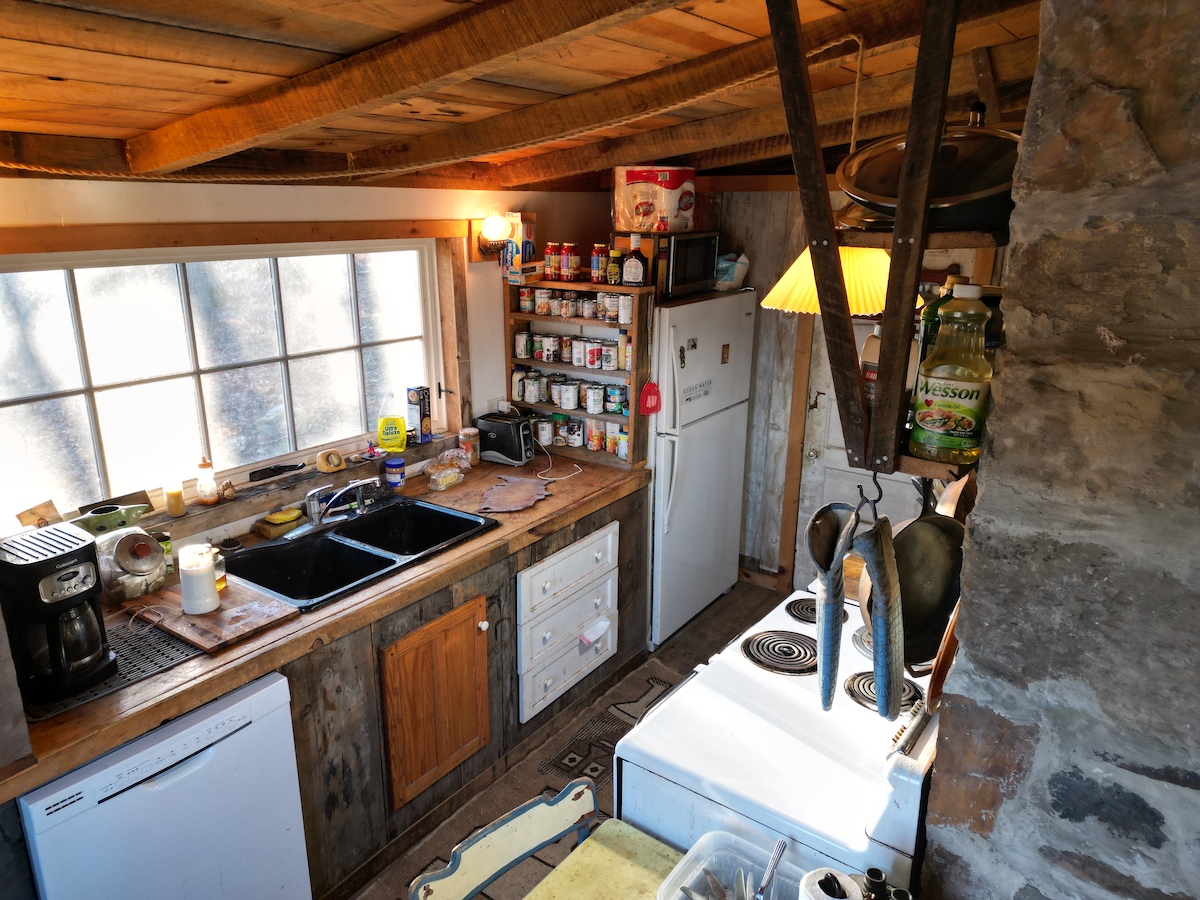 Inside, the cabin offers warmth and authenticity with a true stone fireplace, complemented by a pellet stove on the second floor—perfect for cozy evenings in every season. Modern utilities throughout, including electric, water, and septic, ensure today’s conveniences without sacrificing rustic appeal.
