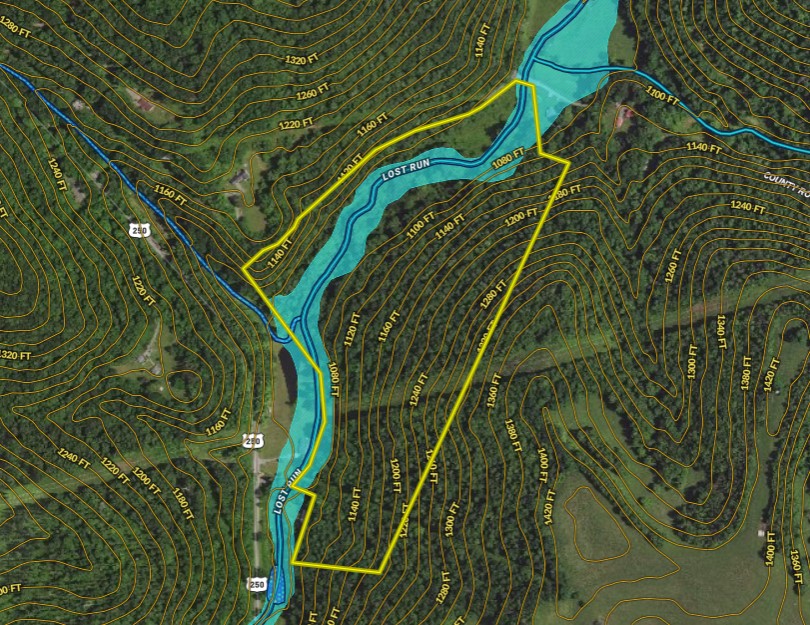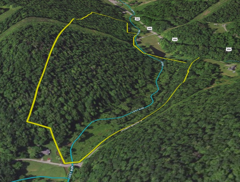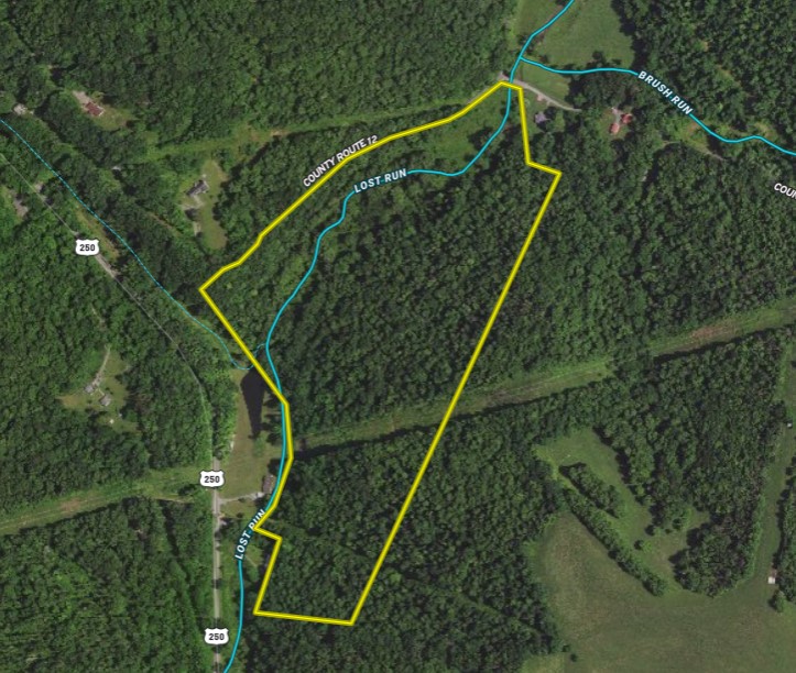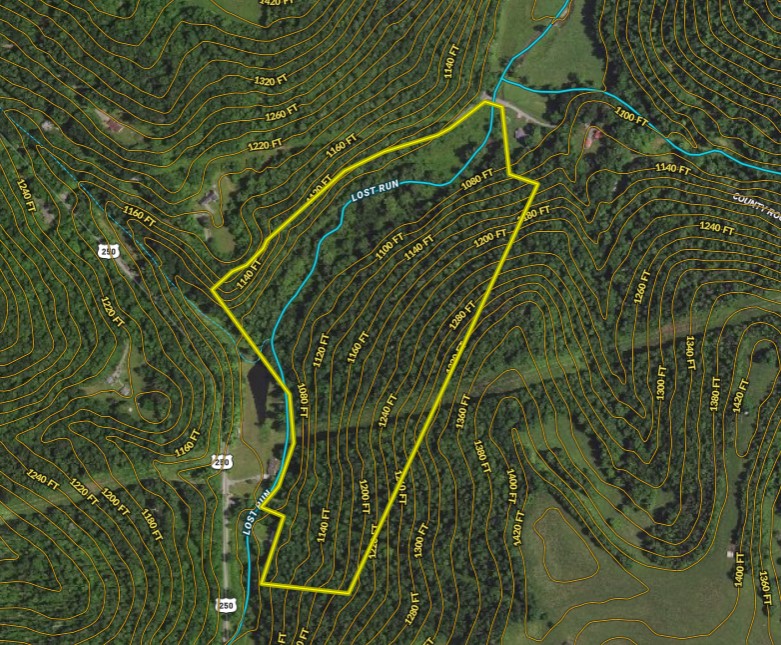 EXCELLENT LOCATION! Located in some of the most beautiful farm country outside of Bridgeport with over 2000' of a picturesque winding stream frontage, this tract is one of a kind. With good road access off of County Route 12 in the corner by the bridge and a short drive to Grafton or Bridgeport, this tract could be a future farm or an incredible hunting tract. Whitetails like diverse habitat and edges – and this tract has every type of habitat. Fertile field, stream bottom, swamp/flood plain, brushy cover, and west-facing hardwood timber – are all on one tract! You could plant a food plot in the bottom or make a remote food plot on the powerline that runs through the back of the timber. With food, water, and sanctuary – this tract offers all the components needed to support incredible hunting and abundant wildlife. Approximately 2 acres of the valley bottom is a fertile field that could be used for building a cabin, house, or for a camper, or RV. An additional 6+ acres of valley bottom is located within the 100-year flood plain of Lost Run – and could be used as excellent grazing habitat/pasture or as food plots for the wildlife. Electric is available at the county road. Public water is nearby – but unconfirmed on the country road adjacent to the tract. There is over 1500' of county road frontage, but the main access point into the field is by the bridge at the road intersection to the north. A logging road at the top of the hill provides a secondary UTV access point for hunting in the southern part of the valley bottom.