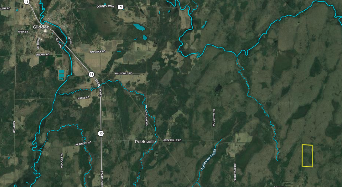 Located in a pristine area of the Northwoods just South of the Chippewa River, this hunting land and cabin features a mix of mature timber and heavy cover, providing excellent habitat for wildlife. Adjacent to the property lies large tracts of forestland and remote woods roads with many nearby Lakes, Streams and Rivers, including the Famed Turtle Flambeau Flowage for all of your outdoor recreational interests. Nearby Villages include Butternut and Glidden, and the property is approximately a 45-minute drive South of Chequamegon Bay of Lake Superior. Access to the property is excellent via Masterson Fire Lane, and it’s a very quiet backwoods gravel road seldomly traveled.