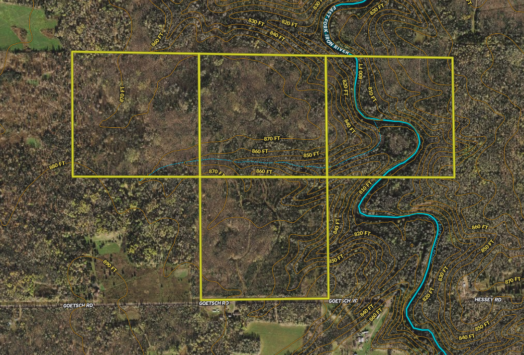 Located on the east fork of the Iron River, this property features several permanent blinds over individual food plots scattered throughout the property with a complementing trail system. A mix of regenerating and mature aspen combined with oak, maple, and various evergreens amongst rolling terrain and feeder ravines. The property already has a road front building location and a nicely graveled driveway with power and fiber optic. This is a beautiful semi-remote recreational location that includes great trout fishing! In between the town of Iron River and the Lake Superior South Shore.