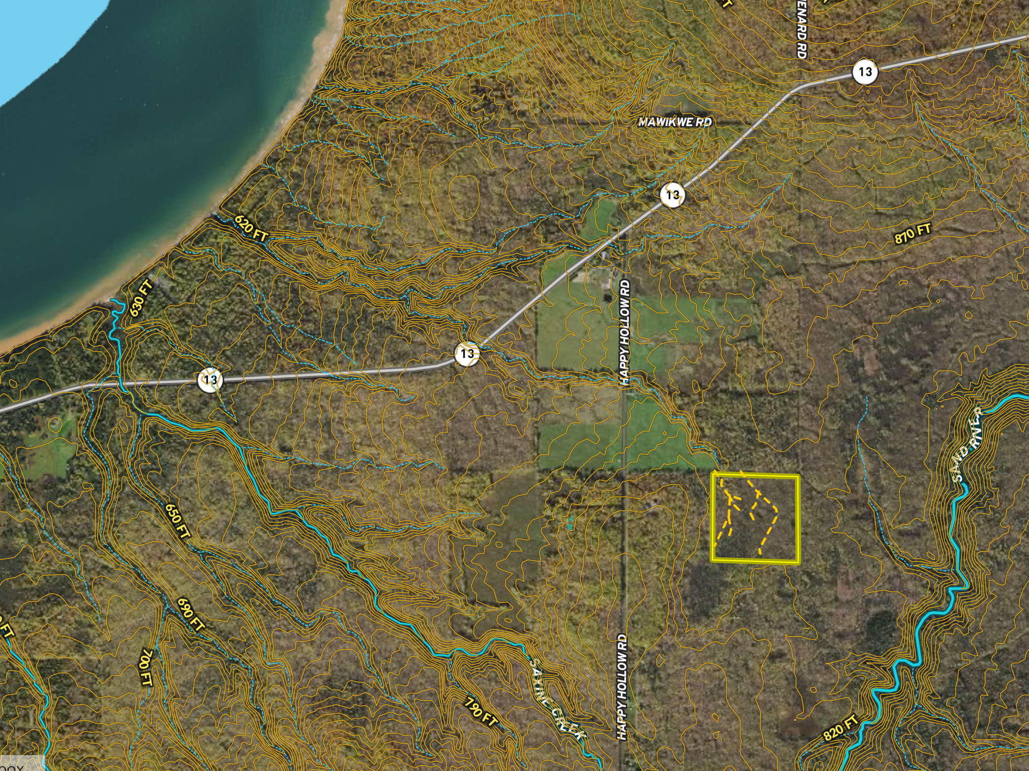 The property is located due East of the fishing village of Cornucopia and just 1.65 +/- miles from the Lake Superior South Shore. This area is well known for tremendous Whitetail Deer, Black Bear, and Excellent Grouse hunting, as well as world-class fishing for Trout & Salmon on Lake Superior and the surrounding Apostle Islands National Lakeshore.