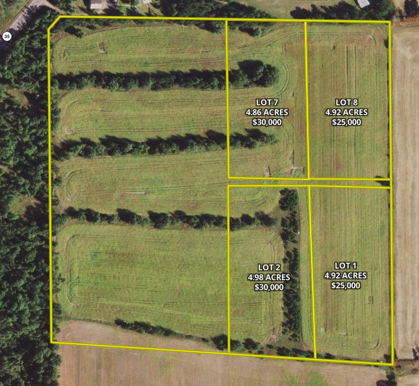This rural property is located at the end of a newly created private road. There are 4 lots available, so it’s possible to make two larger lots on each side of the road. There are some rows of trees for privacy as well as flat ground throughout the property. It’s an area not too far out of town and in the middle of an area that holds a lot of wildlife. There’s access to the county ATV trail system from any of these lots. Give me a call for a private tour and get your choice of lots before they’re all gone. The owner is willing to finance the lots.
