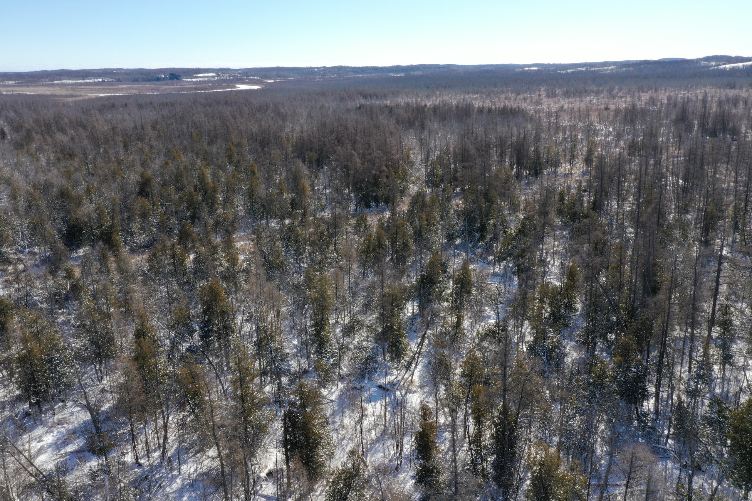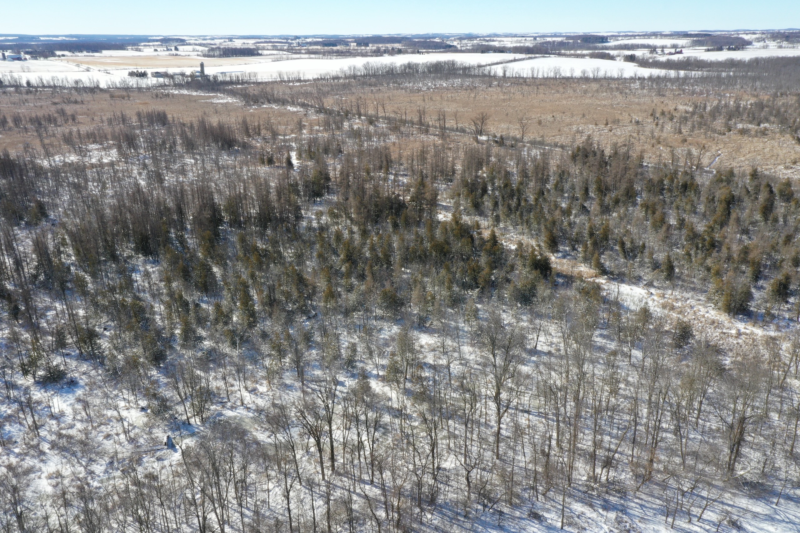 Mostly cedar thickets with poplar and maple trees