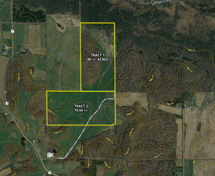 - Tract 1 - 80 +/- acres with 27.6 +/- tillable acres