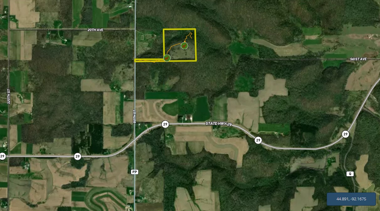 This is a rare opportunity to purchase a parcel in the Big Buck area of Dunn County, Wi. Easy access from the Twin Cites Metro, just follow Hwy 128 south from Interstate 94, turn east on 29 and you are there. Walk-in access to this parcel makes it the epitome of seclusion. A top field has been fallow for years and has grown into head high bedding cover and I saw dozens of fresh beds. Old apple trees dot the wood line and some fantastic trails cross pinch points at the top of the drainages. A very predictable trail pattern is the result. Sit on one of these pinches and watch the rut parade! Again, this is a walk-in easement access but worth every step! Call Land Specialist Neil A. Hauger for a private tour. He has been on every inch of this property.