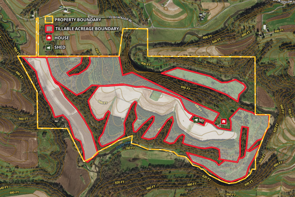 One of the major attractions to draw people to the property would be the nearly 2 miles of Platte River frontage. Fishers from all over may come to have their opportunity at the trout, smallmouth bass, walleye, and catfish the Platte River offers. In addition to the fishing opportunities, deer and turkey are plentiful throughout the property providing excellent hunting opportunities. The sellers have had no problem being able to go out and harvest their deer during previous hunting seasons. The Platte River will also attract ducks and geese onto the property for waterfowl hunting in the fall/winter. Also on the property is a large 50’ x 105’ metal building with concrete floors and a 24’ x 50’ insulated shop. This leaves you plenty of room to store all the equipment and tools you may need to help keep up with the property. If you or someone staying over needs to run into town, Lancaster is a short 10-minute drive, and Platteville is a 20-minute drive from the property. If you are interested in learning more about what this incredible property has to offer, or you are interested in taking a look at it, give me a call to schedule your private showing!