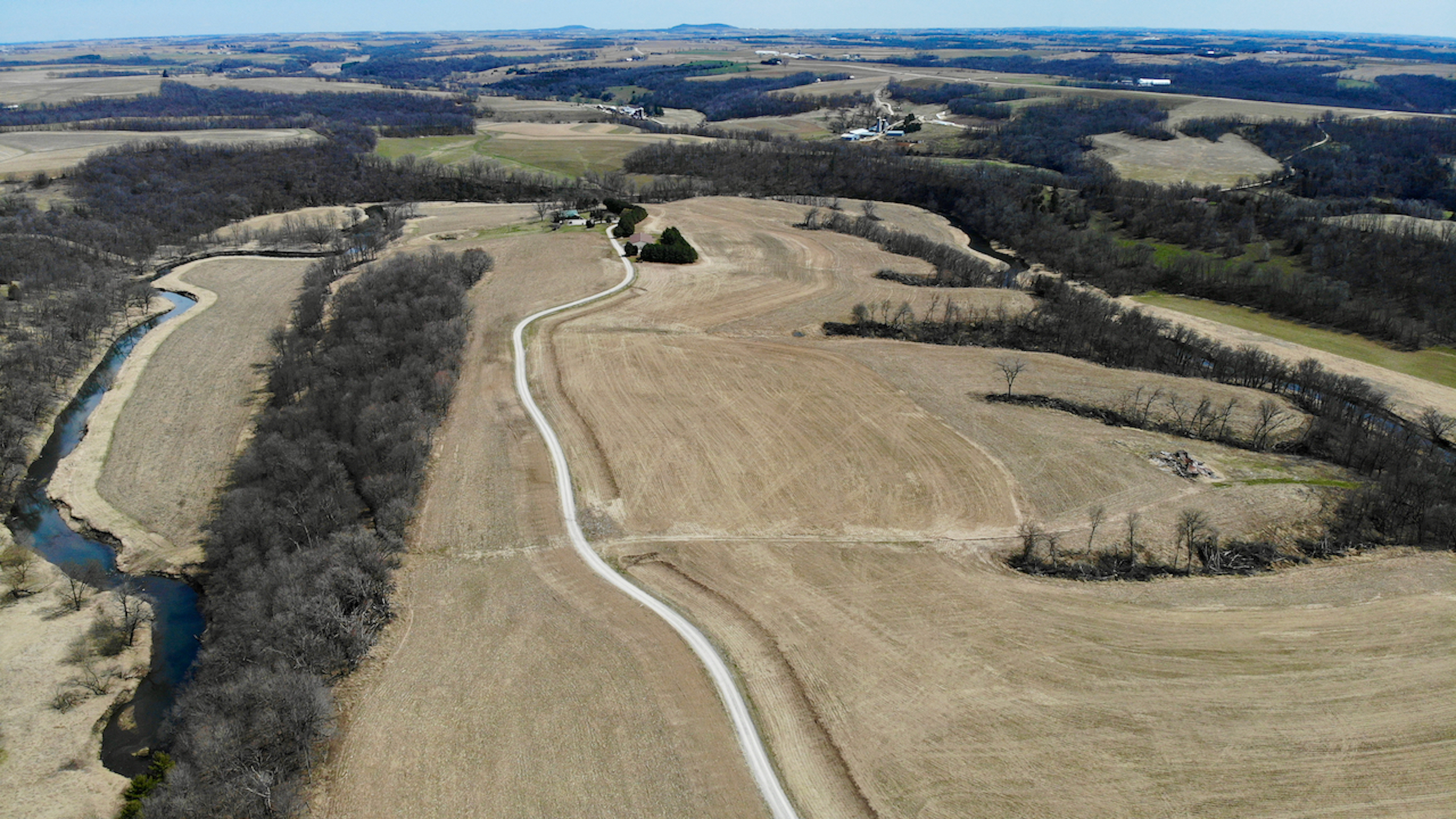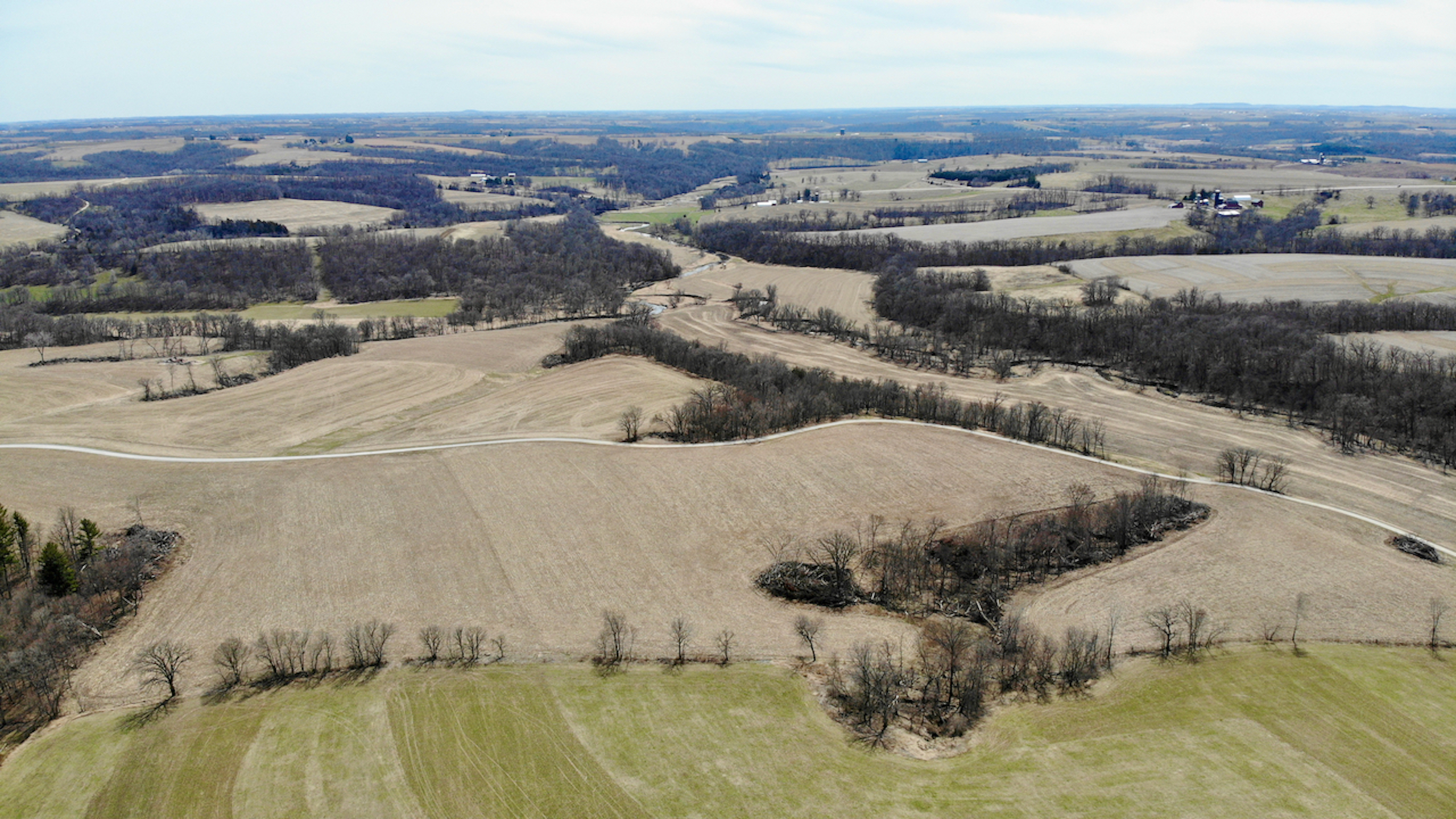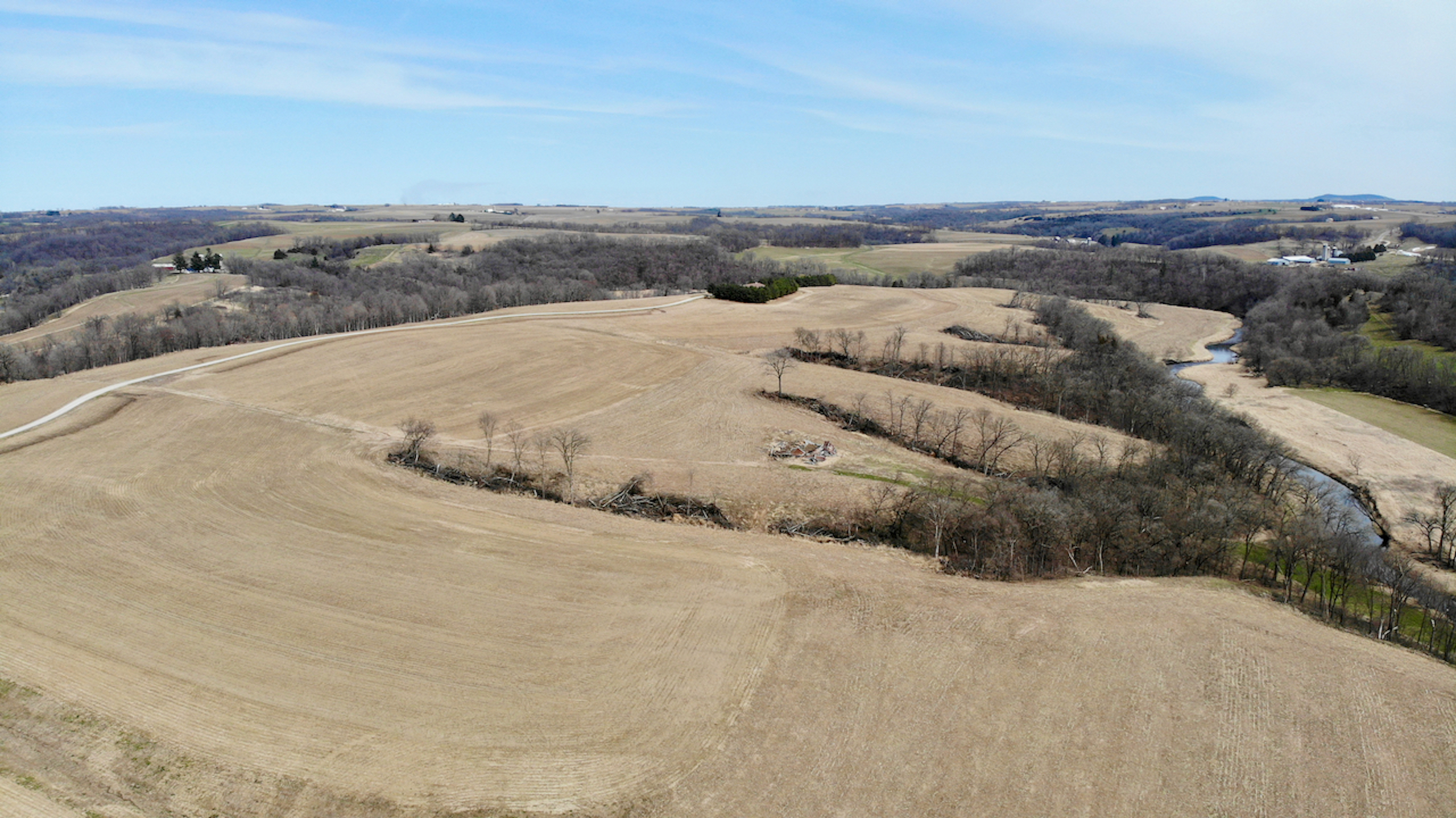 This is your chance to invest in one of the most spectacular properties that Southwest Wisconsin offers! The opportunities on this property from an investment and recreational stance are endless! The property has approximately 170.4 acres of tillable acreage, rented by a local farmer for $170 per acre totaling $28,968 annually. This lease does run through the end of 2023, so you won’t need to worry about finding a renter until planting in 2024. Some timber was cleared in 2020-2021 to maximize the number of tillable acres being farmed. In addition to the farm ground, the house on the property could be rented on Air Bnb, VRBO, etc., throughout the year to bring in more income. A 3,750 square foot home tucked back at the end of a long private drive. The main floor features a large master bedroom and spacious loft to provide maximum space for people staying over. A walkout basement could be used for access to rent the house as two separate units. The basement features a bedroom with a bathroom, a large living room, a bonus room, and in-floor heating. If you choose not to rent out the house, this will make a grand primary residence with great privacy and seclusion. If you desire, there is plenty of space on the property to place additional cabins or buildings to host more people.