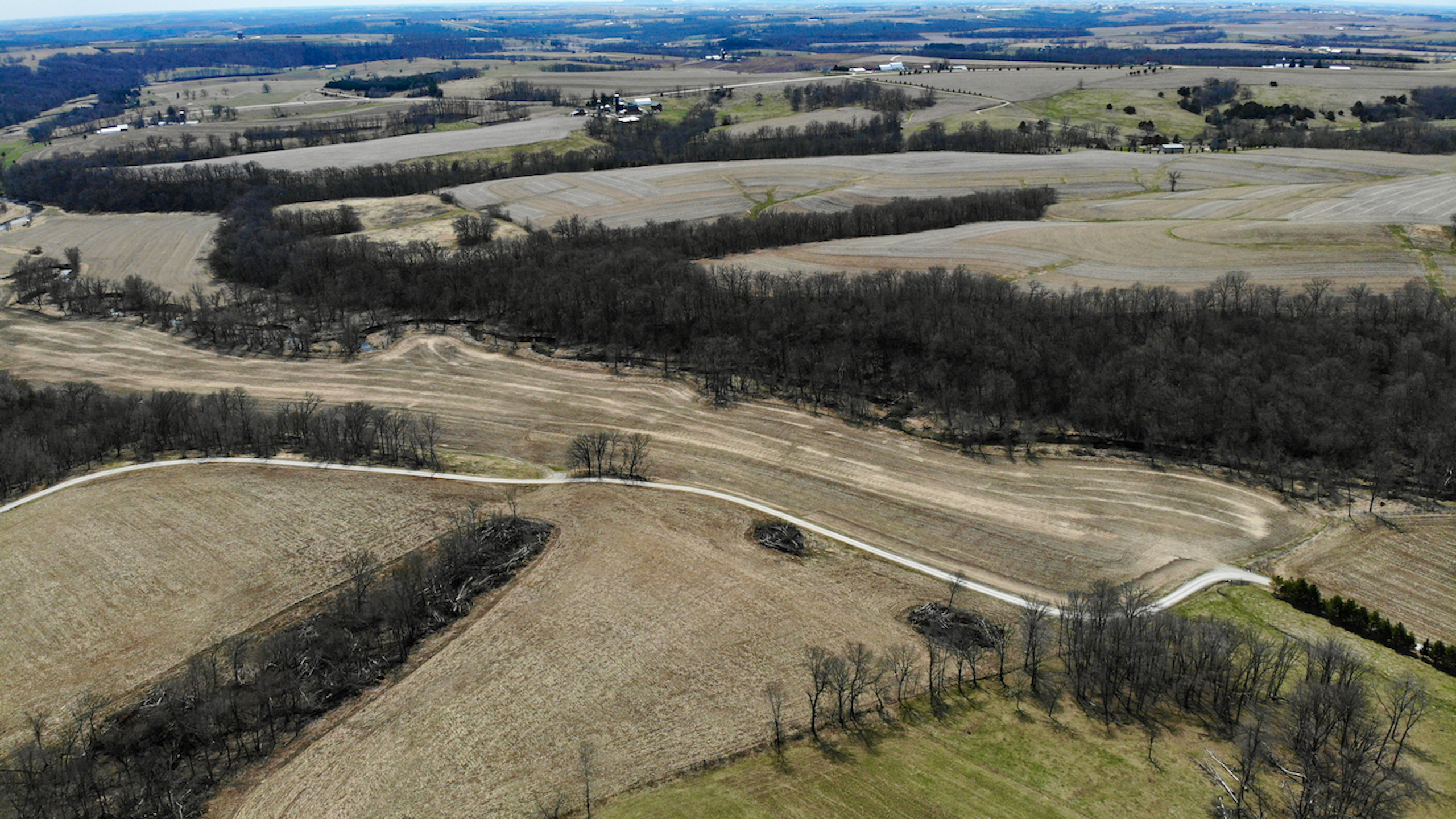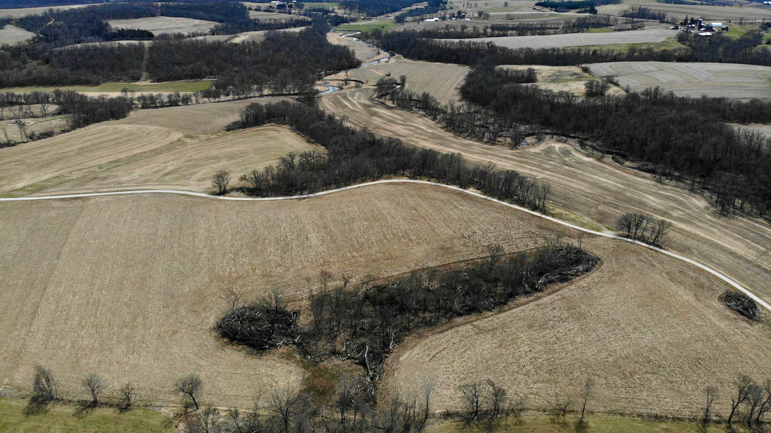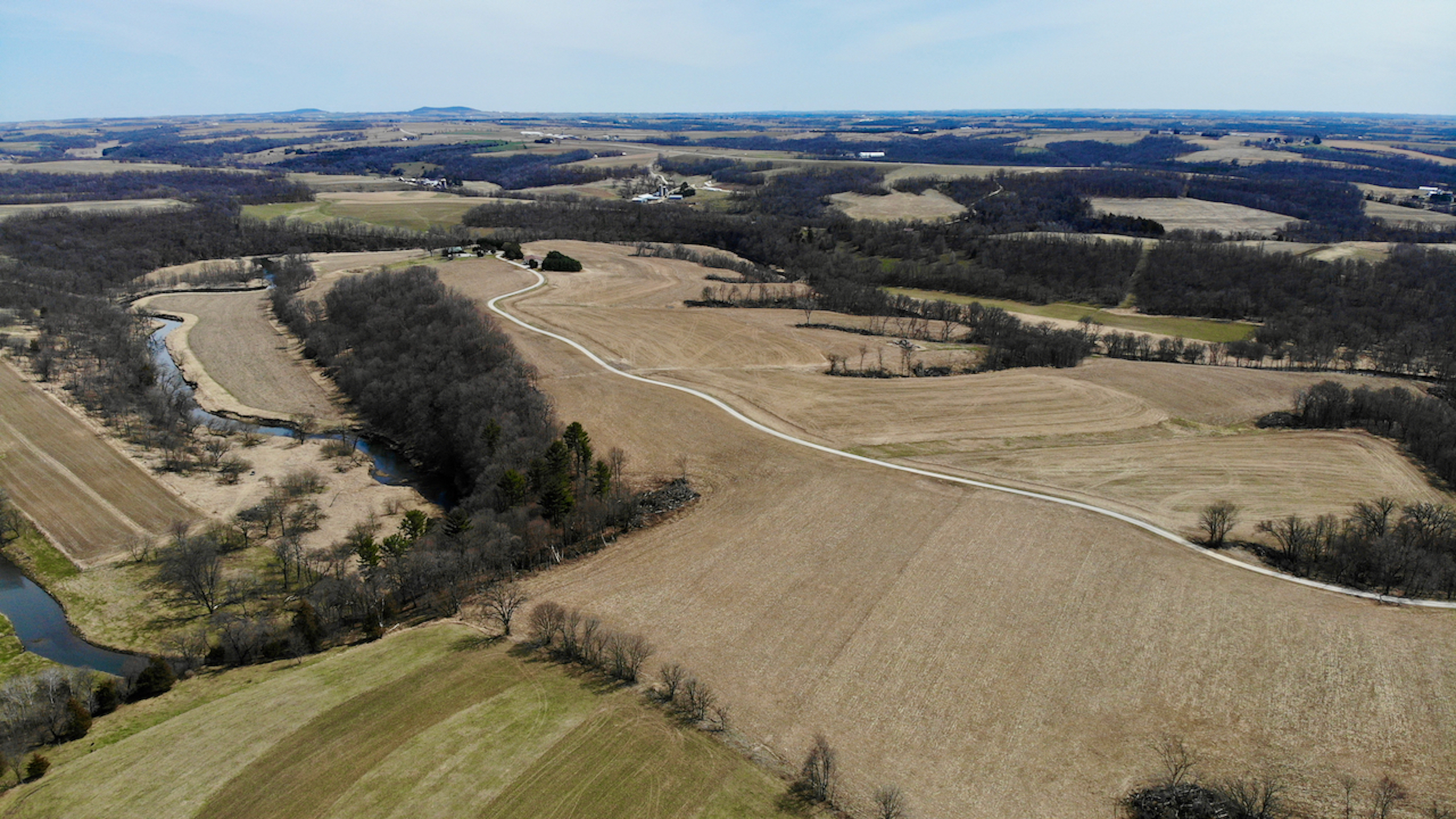 This is your chance to invest in one of the most spectacular properties that Southwest Wisconsin offers! The opportunities on this property from an investment and recreational stance are endless! The property has approximately 170.4 acres of tillable acreage, rented by a local farmer for $170 per acre totaling $28,968 annually. This lease does run through the end of 2023, so you won’t need to worry about finding a renter until planting in 2024. Some timber was cleared in 2020-2021 to maximize the number of tillable acres being farmed. In addition to the farm ground, the house on the property could be rented on Air Bnb, VRBO, etc., throughout the year to bring in more income. A 3,750 square foot home tucked back at the end of a long private drive. The main floor features a large master bedroom and spacious loft to provide maximum space for people staying over. A walkout basement could be used for access to rent the house as two separate units. The basement features a bedroom with a bathroom, a large living room, a bonus room, and in-floor heating. If you choose not to rent out the house, this will make a grand primary residence with great privacy and seclusion. If you desire, there is plenty of space on the property to place additional cabins or buildings to host more people.