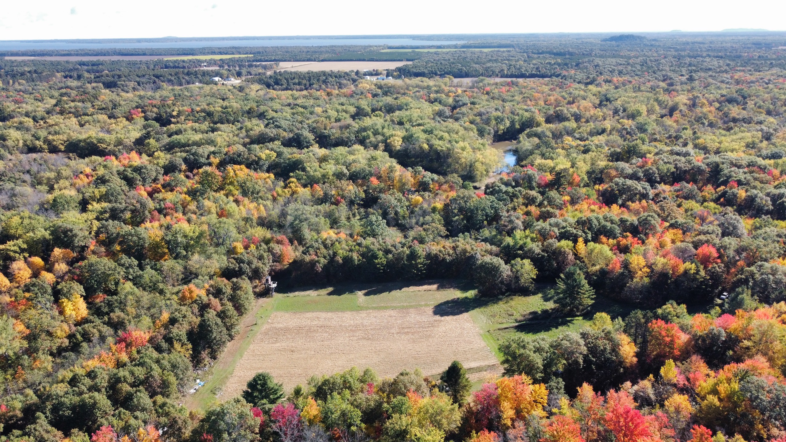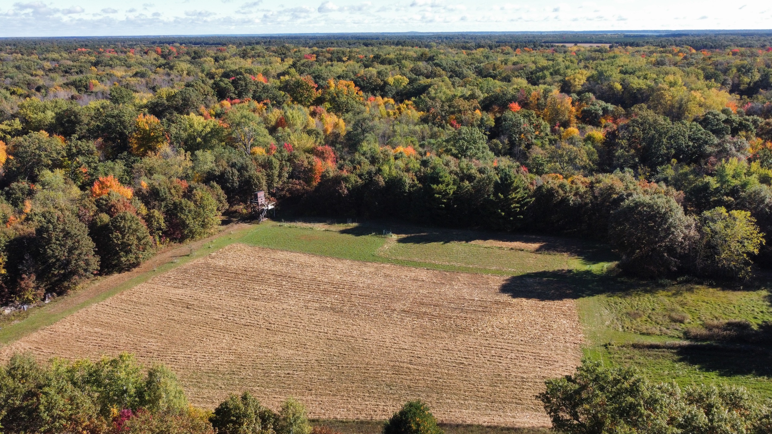 Big game hunting is something that comes with ease on this property. The current owner maintains a large 2.5+/- acre food plot. Planting numerous crops will be a breeze with the open field present and will provide deer with nutrients for an extended period of time, keeping them close during hunting season. There are also numerous apple and crabapple trees surrounding the destination food plot. Alongside the food, plot is a massive permanent deer stand. Enclosed with windows facing all directions allows you to hunt in 360-degree fashion! Shooting lanes are heading in all directions from that stand, allowing for great sight lines.