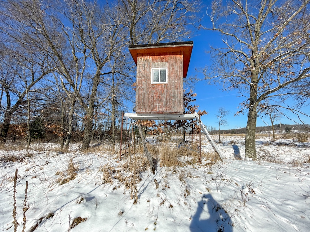 A campsite is located well off the road, offering great seclusion when you’re spending a weekend on-site. The camp includes a converted storage container that serves as a garage and cabin space. This structure offers secure storage for equipment while also providing shelter for overnight stays. There are 3 permanent deer stands that are included with the sale of the property, giving you a solid start for this coming deer season. 60 acres of public ground border the eastern side of the property, offering additional hunting and recreational space.