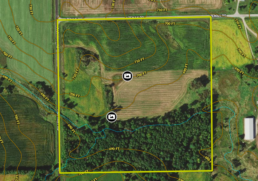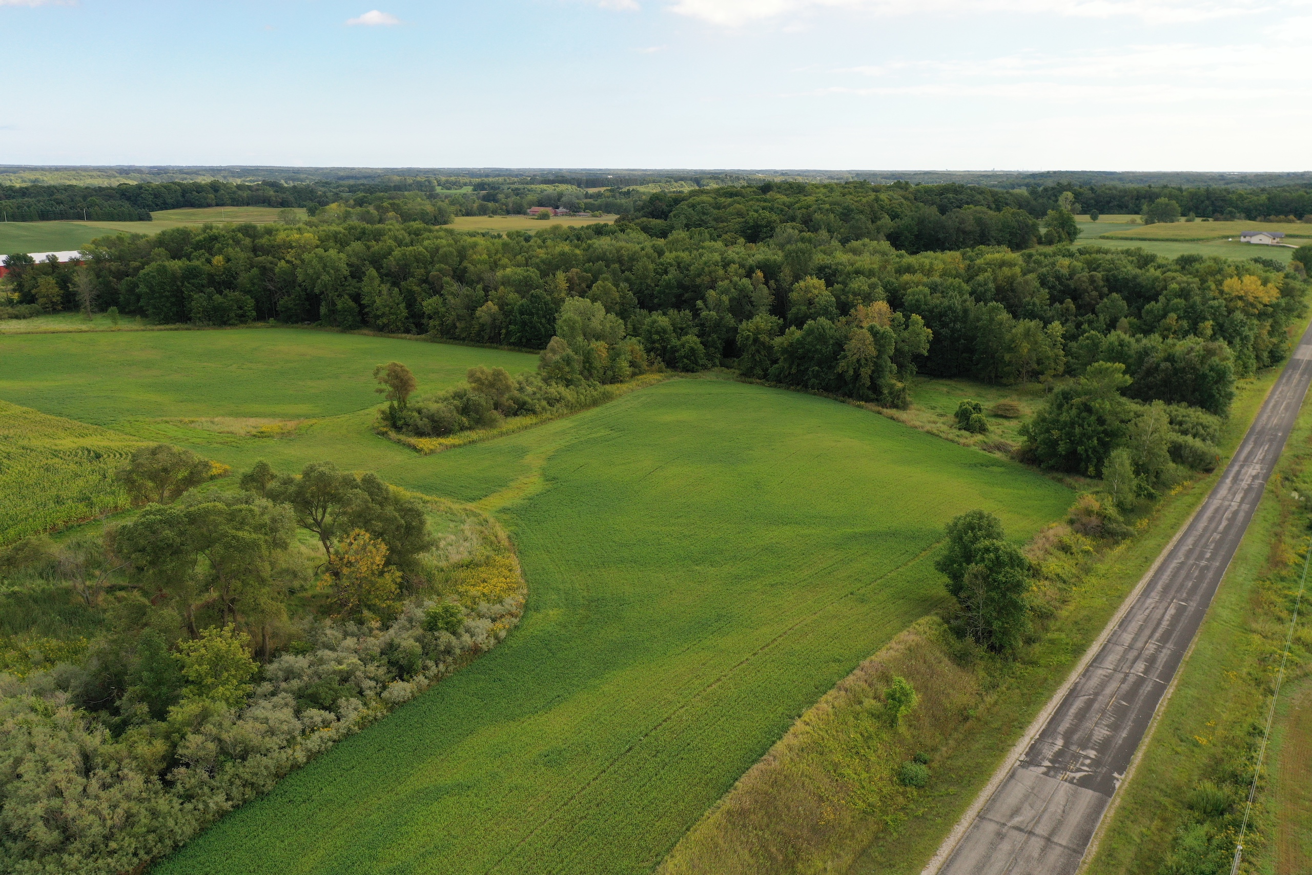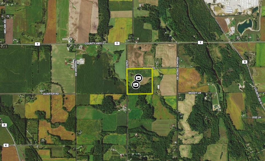 Occasionally a property comes along that just has an absolute WOW factor; this property is definitely that. Located in a quiet farming community and creatively wedged between the Village of Mishicot and I-43 for accessibility to the population centers of eastern Wisconsin lies this absolute gem of a forty. Road access (with electricity at the road) on two sides opens up a variety of options for building a home with zoning approvals needed from the town and county. The property slopes downward from north to south with approximately 40’ of elevation change ending in the wooded area that is just littered with crisscrossed generational deer trails and an intermittent, seasonal, gravel bottom stream. The tillable acreage to the north rolls up and down and is currently planted in corn and alfalfa cash rented to a local farmer. As you’d expect, deer and turkey are abundant here because they have everything they want and need. Rarely will you find a parcel with as much character as this one. Please call list agent Dave Schutt for further insight and your private showing asap. Act now because they aren’t making more like this one!