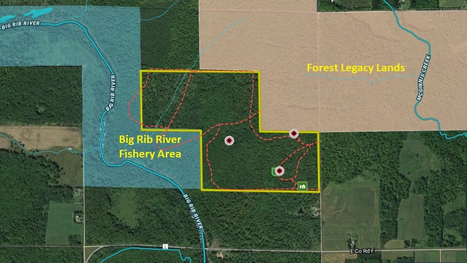 - Adjoins Big Rib River Fishery Area and Legacy Forest Lands