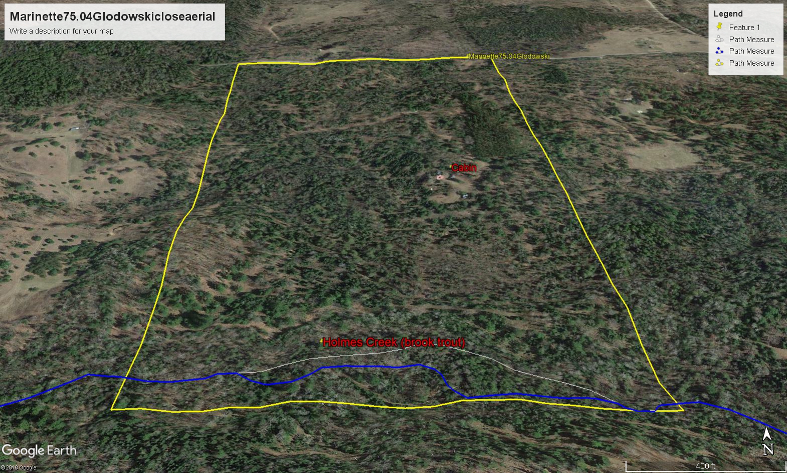 - Holmes Creek crosses the south side of the property, nice trout stream