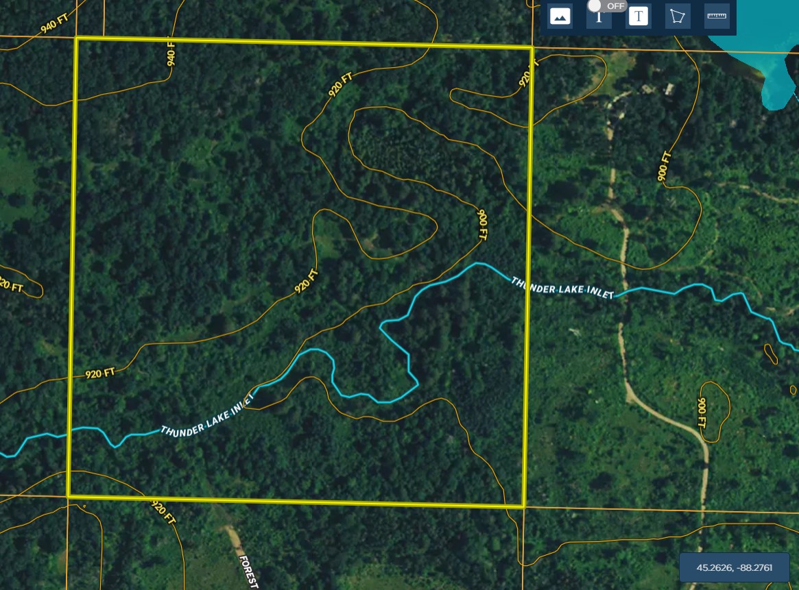 Opening the gate to this property will give a sense that you arrived home for good. Drive down a gradual hill 200 feet to cross the Thunder Lake Inlet, a clear sandy bottom creek, then back up the road to the top of the hill through oaks, maple, birch, and pine in their natural state. This property has just the right mix of high and low ground, good bedding areas, and sunny hillsides that overlook the creek. It is located at the end of very well maintained Forestry Road 1621 and only ½ mile north of County Road W west of Crivitz, so getting here is easy. The entire south side of this property borders Marinette County lands open for your use and just west is a huge block of Chequamegon-Nicolet National Forest. Step across the northeast corner of the property to cast a line in Bottle Lake, a 7-acre lake with Panfish and Largemouth bass, or walk just a bit further east to Sand Lake and enjoy panfish, bass, and trout. This 32-acre lake is the site of the Camp Bird State Youth Recreation Center. Once you find this property you have found the peace that only the north offers, a place to escape to that is hard to drive away from. There is no electricity available on the property, so plan on building your camp as an off-grid oasis. If you don’t own an ATV or a snowmobile you most likely will, this is a dreamland for anyone who likes to be on highly maintained trails and enjoys taking a ride to the pub for a burger. This land ranks very high on the scale by providing great hunting, immediate access to trails to ride, close access to lakes and streams to fish, and it is affordable. For the best description of what this property can provide you and your family be sure to contact Terry Patrick, the listing agent. It is ready right now, the internal trails have been mowed, open spots are available to park your travel trailer, or to build your cabin. Showing you this one will be a pleasure. It is just a call away.