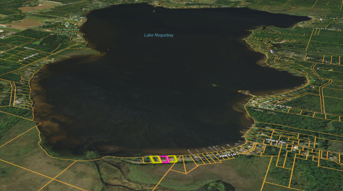 - 122 feet of pristine shoreline on a premier Lake Noquebay's northeast corner, the quiet corner of the lake