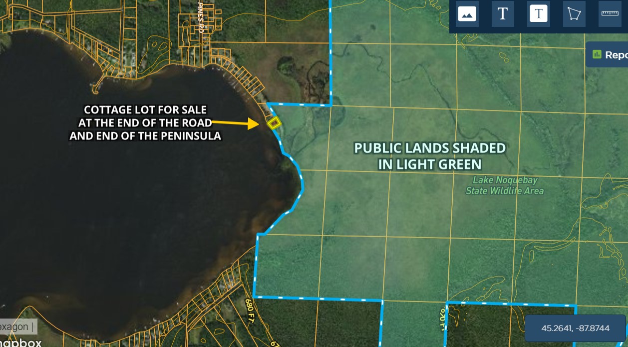 - Hunting public land begins out your back door as the Lake Noquebay State Wildlife Area is your neighbor as is the Marinette County Forest and State of Wisconsin DNR land. Over 4,300 acres of land, all free for you to use